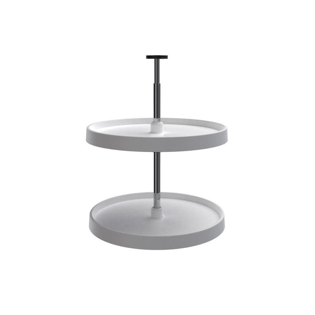 The back of a tall wall corner cabinet is traditionally one of the most difficult to access storage spaces in the kitchen. There is no need to drag a step ladder out and empty the cabinet's contents to reach what you need in the back when you have a Value Line Full-Circle Lazy Susan from Rev-A-Shelf® installed in your corner wall cabinet. Single, double, and triple shelf options independently rotate, making seeing and getting to your items a breeze. Available in 18" and 24" diameters, they come with bottom mount or Twist-n-Lock telescoping hardware options with adjustable molded hubs that make moving the upper polystyrene shelves effortless.. Included: (2) Polymer Shelves, (1) telescoping post and screw pack