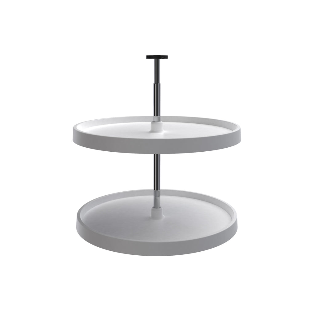Does the inaccessible storage space in your awkward corner base cabinet make your head spin? Don't get dizzy! Instead, spin a full-circle Lazy Susan from the Rev-A-Shelf® Polymer Value Line and enjoy complete access to every inch of your corner base cabinet. Single and two shelf options are available in 24" and 28" diameters with a choice of bottom mount or Twist-n-Lock telescoping hardware options with adjustable shelf supports designed to make rearranging the upper polystyrene shelves a breeze.. Included: (2) Polymer Shelves, (1) telescoping post and screw pack
