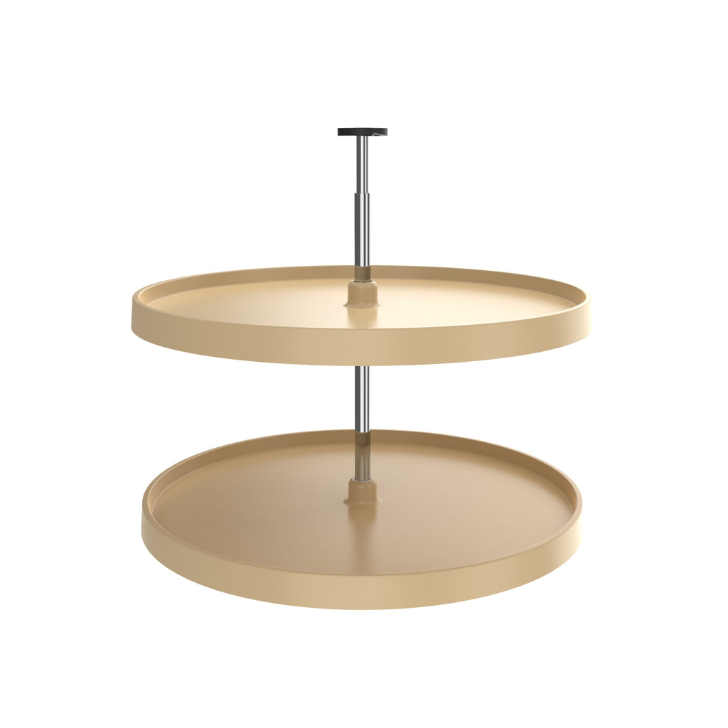 Does the inaccessible storage space in your awkward corner base cabinet make your head spin? Don't get dizzy! Instead, spin a full-circle Lazy Susan from the Rev-A-Shelf® Polymer Value Line and enjoy complete access to every inch of your corner base cabinet. Single and two shelf options are available in 24" and 28" diameters with a choice of bottom mount or Twist-n-Lock telescoping hardware options with adjustable shelf supports designed to make rearranging the upper polystyrene shelves a breeze.. Included: (2) Polymer Shelves, (1) telescoping post and screw pack