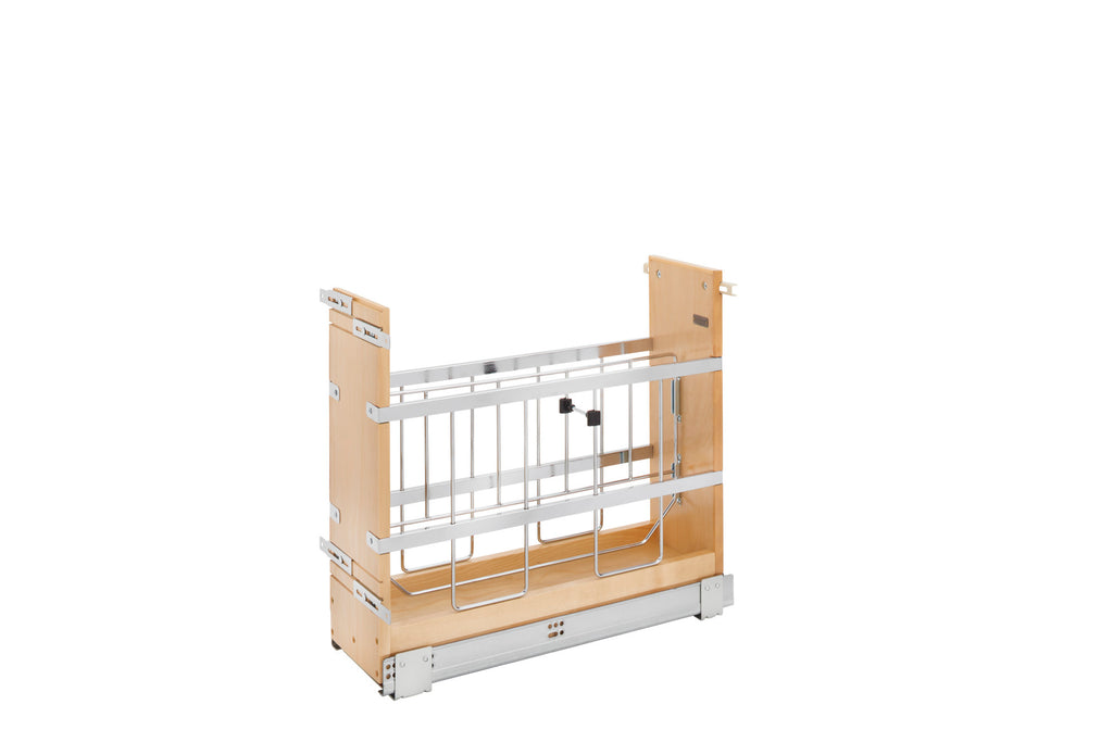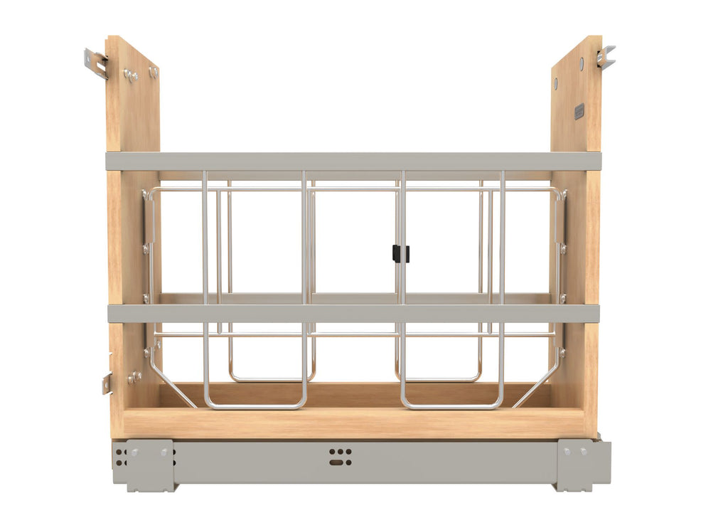 If you're tired of cluttered, unorganized, and hard-to-access cabinets, then look no further than the Rev-A-Shelf® Bakeware Organizer. This fully assembled bakeware organizer will bring your heavy platters and baking dishes right to your fingertips with its heavy-duty soft-close slides. Change it up and use one side for baking sheets and/or platters and the other side for large rolls of foil or stretch wrap. The unit works best in a full-height cabinet where no drawer is above, but will work with a door/drawer cabinet, but note that some taller items may not fit as well. Available in multiple widths and with the included door-mount brackets to attach to your existing cabinet door, this unit will surely make your kitchen tasks much easier.. Included: (1) Wood organizer, adjustable dividers, (1) slide, mounting hardware and door-mount brackets