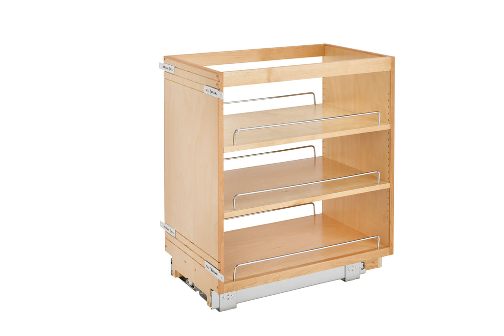 If you're tired of cluttered, unorganized and hard to access cabinets, then look no further than the Rev-A-Shelf® pullout shelving system. This innovative series of pull-out organizers are available in a variety of sizes (depth, height and width) and are available in a variety of style to accommodate any type of kitchen. From baking sheets, spices, cutting boards, utensils and even knife organization. No kitchen is complete without one of these organizers and it will change how you use your kitchen. All units require a full-height cabinet (where no drawer is above) and cabinet door must attach to gain the full features of the unit.. Included: (1) Wood organizer, adjustable shelves with Chrome rails and mounting hardware
