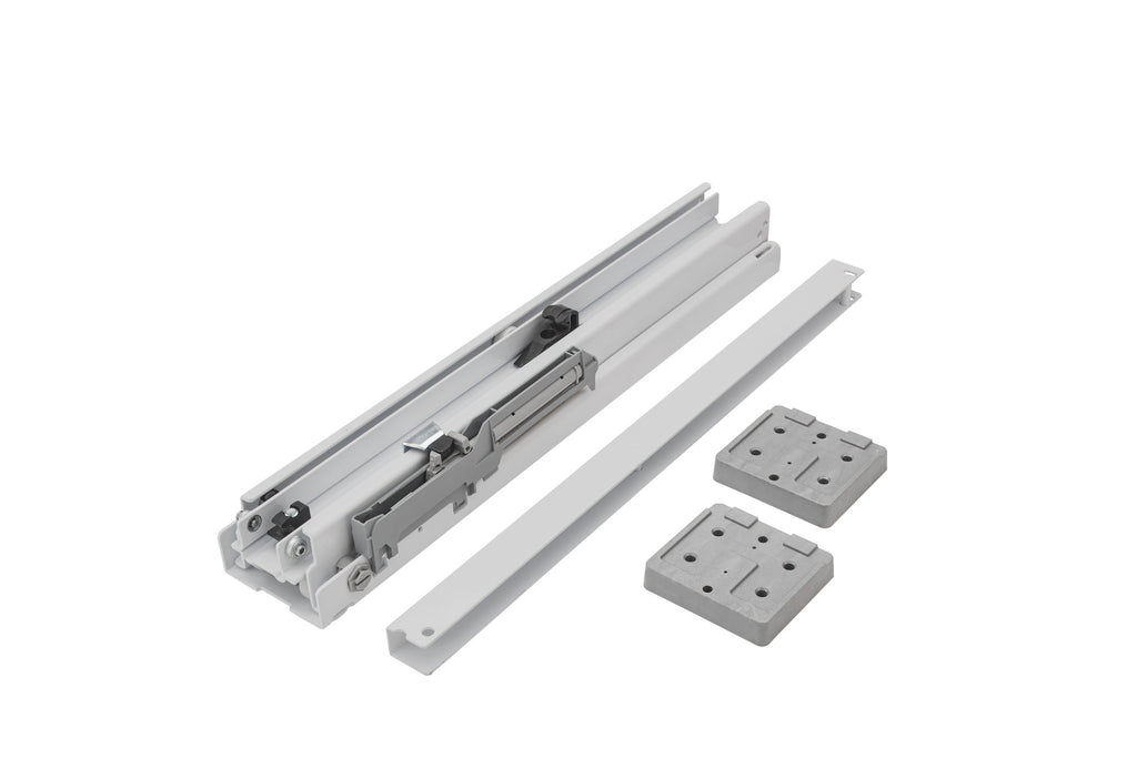 - 3-Piece heavy-duty soft-close full-extension progressive slide system