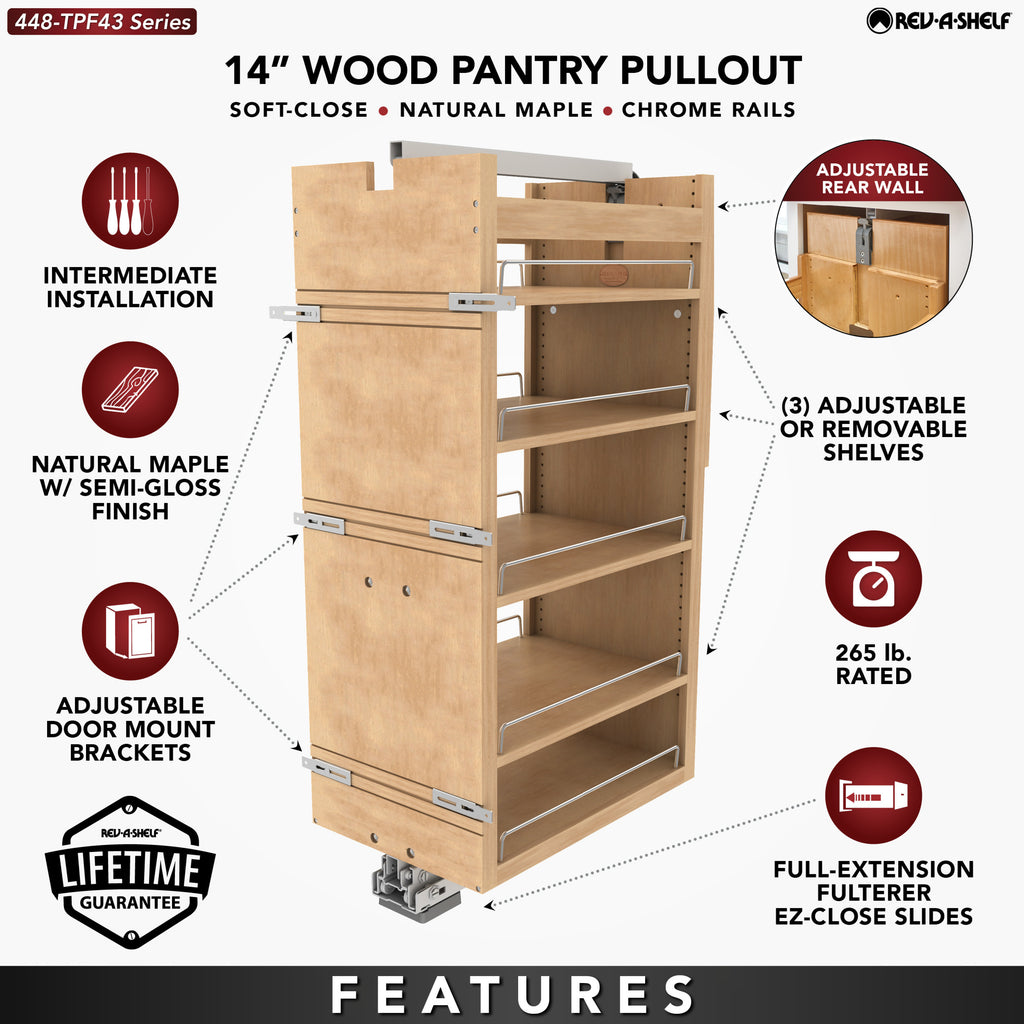 - Designed for a 18" full-height pantry cabinet with a 14-1/2" W or larger opening
