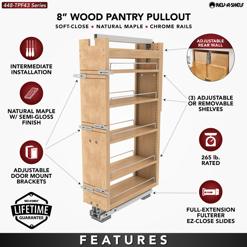 REV A SHELF : Wood Tall Cabinet Pullout Pantry Organizer w/ Soft-Close