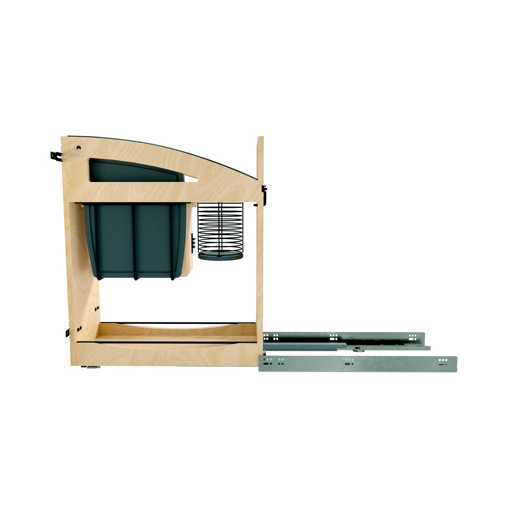 Streamline your kitchen organization with the 448KBCC Craftsman Collection Knife Block Base Cabinet Pullout. This innovative pullout combines solid maple construction with gorgeous soft edges, curved black wire accents, a removable wire utensil bin and up to two knife block inserts with Flex Rod Technology for a secure and stylish way to store knives, shears, and more.. Included: (1) Wood organizer frame, (1) pair of soft-close slides, (2) fixed shelves, (2) integrated knife block organizers, (1) removable 2 qt. wire utensil bin, (1) 15 mm black cutting board and mounting hardware