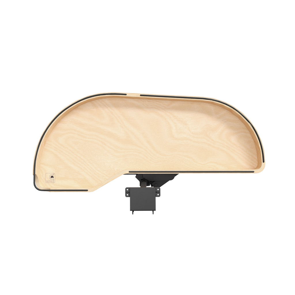 - Banded wood rim with recessed black wire accents that double as a handle for easy operation, 5/8" thick maple plywood shelf bottom