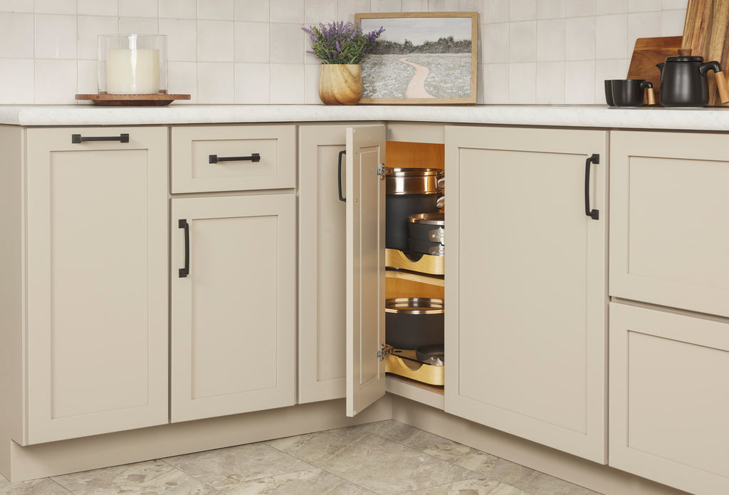 - Kidney-shaped lazy susans do not attach to the cabinet door