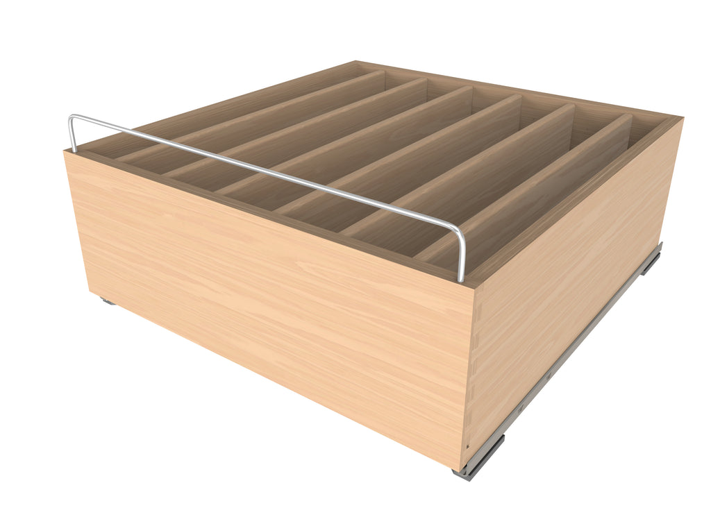 Is your cabinet crammed with casserole dishes that you have to bend, reach and unstack to use? Well, put those troubles behind you with our 4CDS Series Casserole Organizer.. Included: (1) Wood drawer, (6) wood dividers and clips, slides and mounting hardware