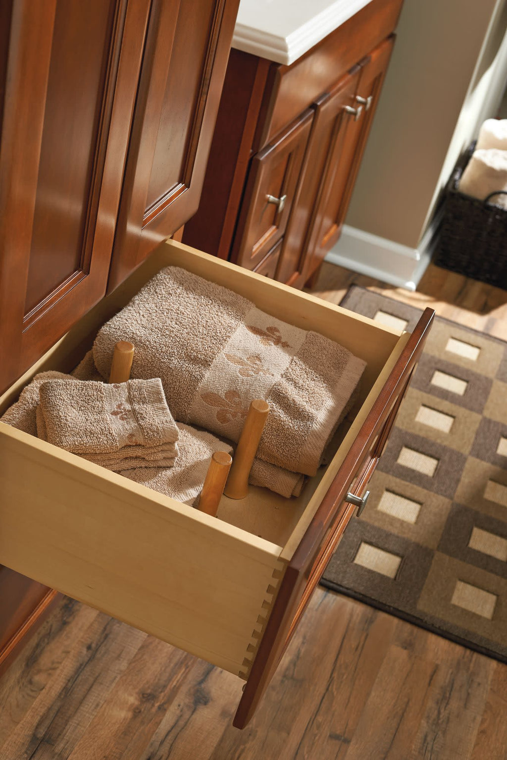 Rev-A-Shelf® has made it easy to organize your deep drawers with our Wood Pegboard System. Available in three standard sizes. Each size can be trimmed-to-fit and with the easy drop-in installation you can take your drawer from drab and messy to chic and orderly within seconds.. Included: (1) Wood drawer pegboard insert and (9) Wood pegs