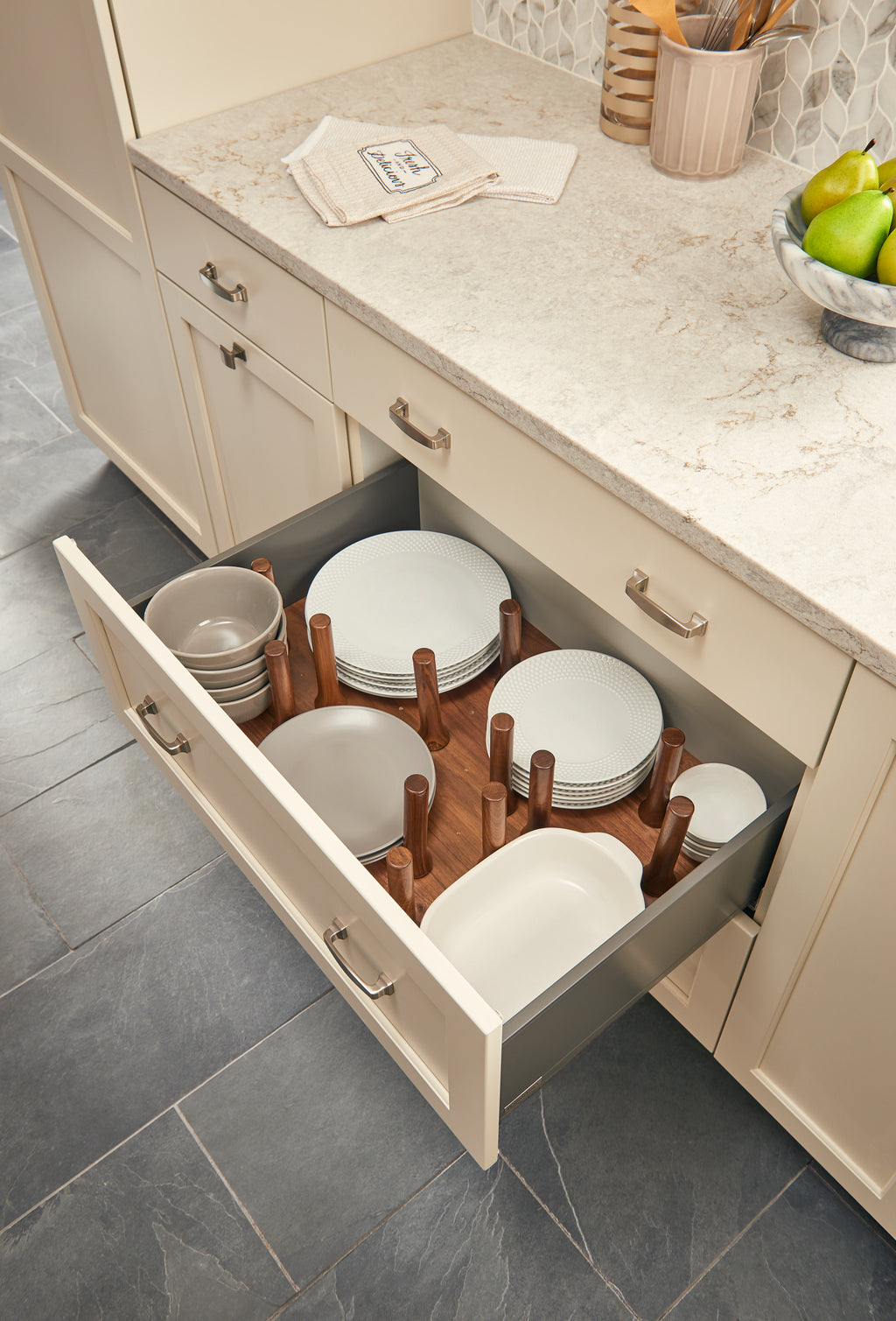 Rev-A-Shelf® has made it easy to organize your deep drawers with our Wood Pegboard System. Available in three standard sizes. Each size can be trimmed-to-fit and with the easy drop-in installation you can take your drawer from drab and messy to chic and orderly within seconds.. Included: (1) Wood drawer pegboard insert and (16) Wood pegs