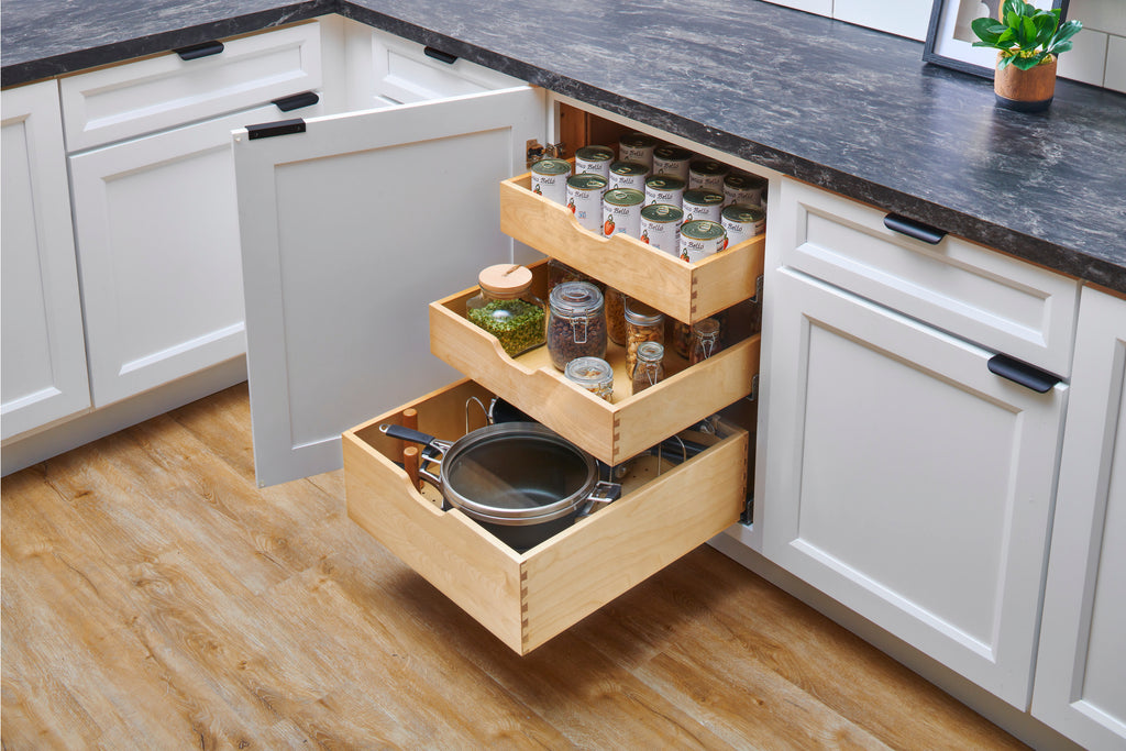 - Mounts to cabinet side, installs easily with (4) screws per drawer box