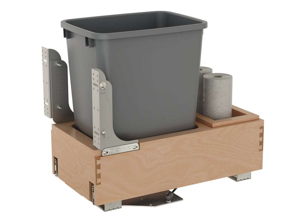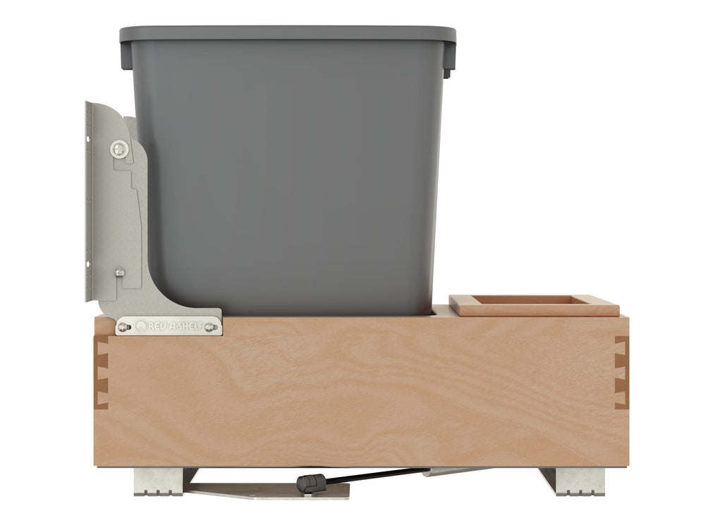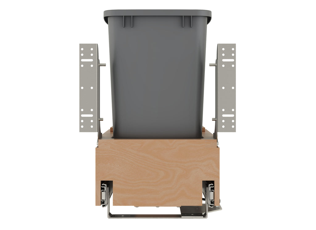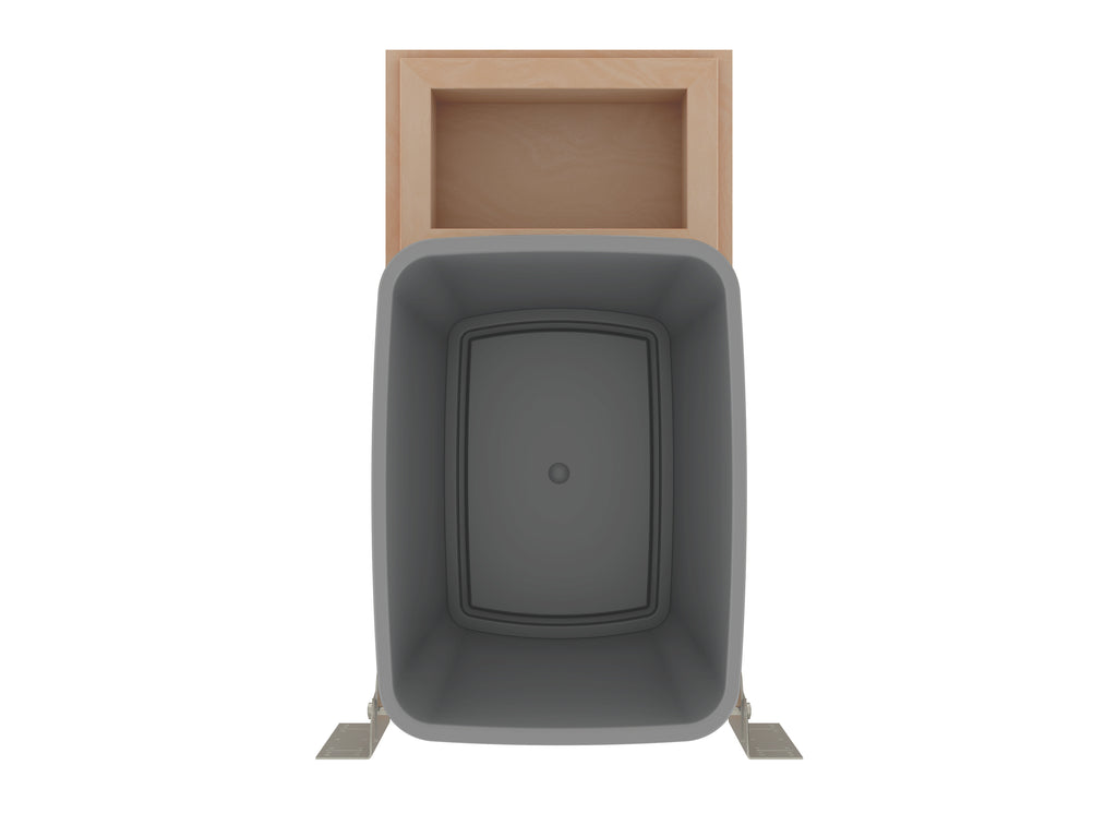 The 4WCBM Series Waste Containers are the only bottom mount units available with the Rev-A-Shelf® patented Rev-A-Motion® soft-open soft-close slide system. The innovative gas spring assisted soft-open allows the unit to open smoothly and the soft-close shuts softly, even under the heaviest of loads. All units feature metallic silver waste containers and built-in door-mount brackets and many have a removable wood bin in rear for bag storage. The 4WCBM is easy to install with only (5) screws and features a beautiful dovetail constructed frame, concealed 150 lb. slides for a clean look.. Included: (1) Silver 35 qt. waste container, (1) wood frame, (1) pair of soft-close slides, mounting hardware, and Door-Mount brackets