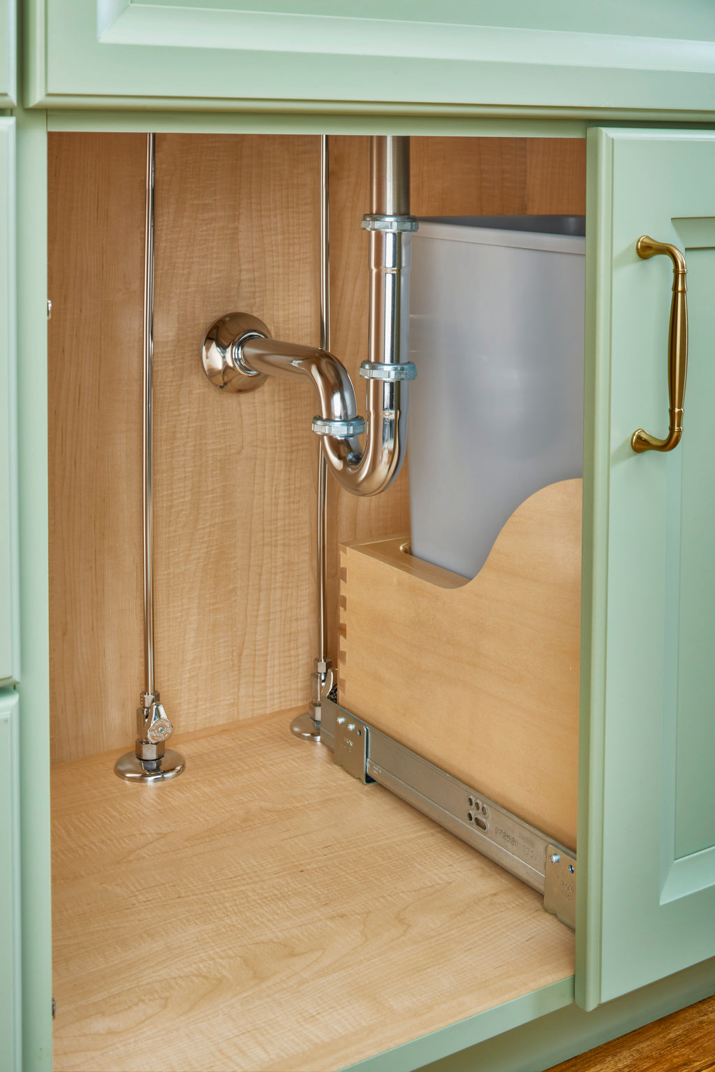 Nothing beats the look and warmth of natural wood. Rev-A-Shelf® 4WCSC Series is one of the best-selling pullout trash containers and is specified by top kitchen designers. With its maple construction and BLUM drawer slides, it's no wonder why it is an industry favorite. Available in multiple widths, heights and polymer bin capacities, you will have no problem finding the right size to fit your cabinet or application.. Included: (1) Gray 32 qt. waste container, (1) wood frame, (1) pair of soft-clsoe slides, mounting hardware, and Door-Mount brackets