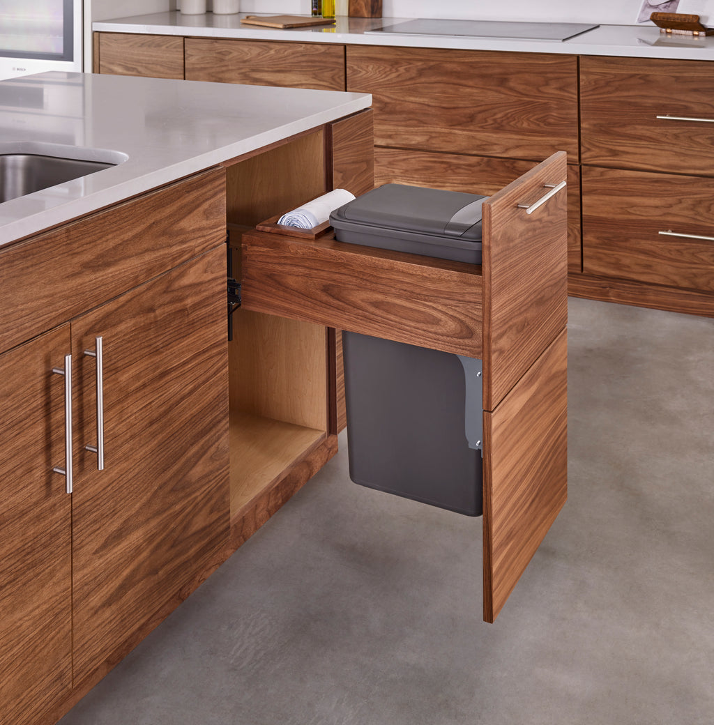 - Note: Top Mount Waste containers come in many different widths as they are specific to a cabinet opening to function properly