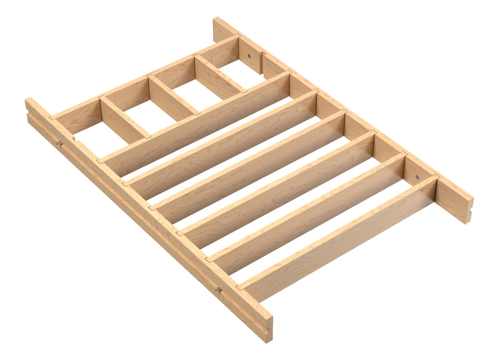 The 4WDIV Series Shallow Drawer Divider Insert from Rev-A-Shelf® is the perfect, versatile solution for kitchen drawers! With adjustable dividers, this system makes customizing your drawer into the perfect place to store your kitchen essentials easy. The 4WDIV Series installs in seconds with just four screws and comes with adjustable and removable dividers, allowing you to create multiple compartments in seconds for maximum organization.. Included: (2) drawer front and back rails, (5) long dividers, (2) long notched dividers, (3) small dividers amd mouting hardware