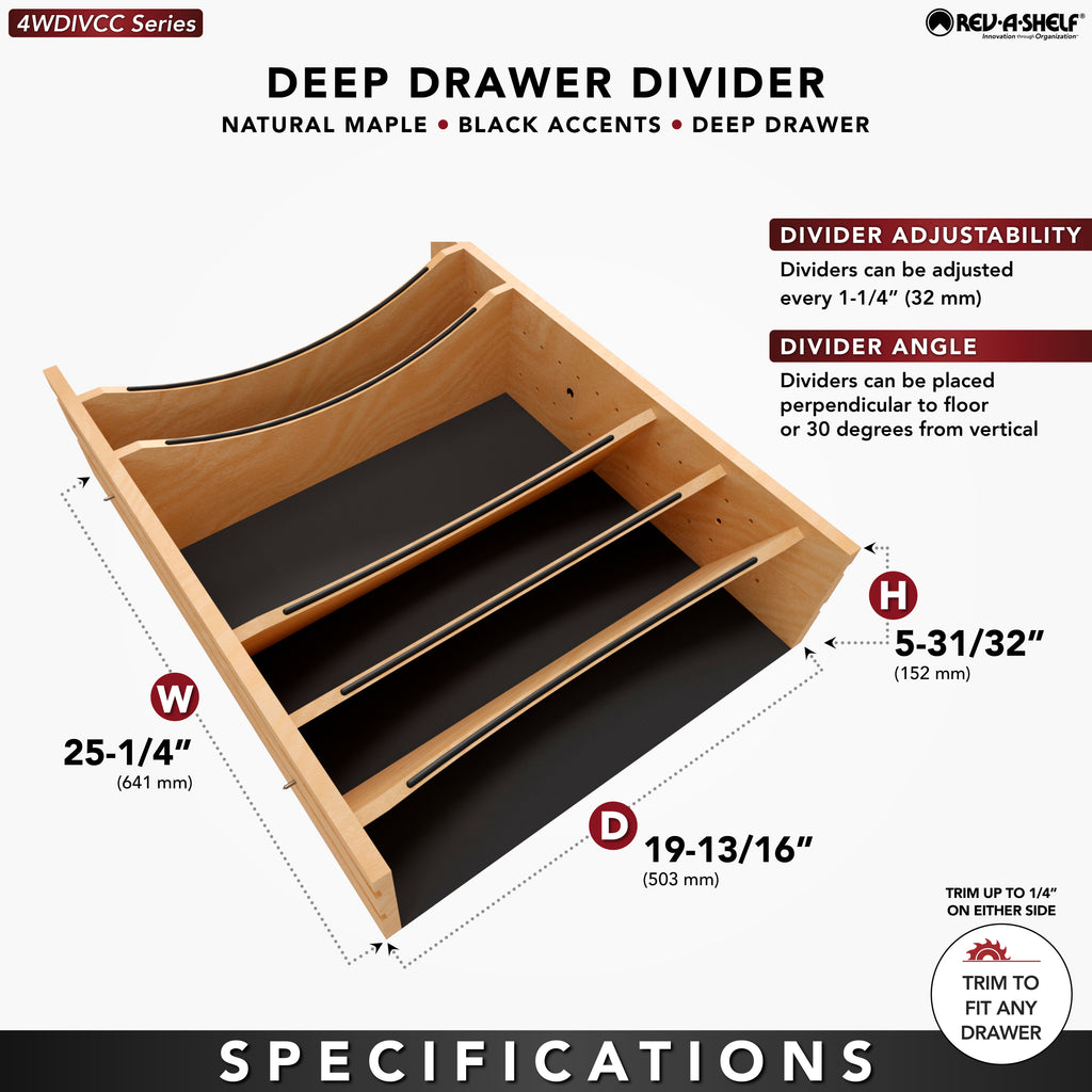 Are deep drawers driving you crazy? You are not alone! The 4WDIVCC Craftsman Collection Adjustable Deep Drawer Divider Inserts from Rev-A-Shelf® are sure to add organization without sacrificing style.