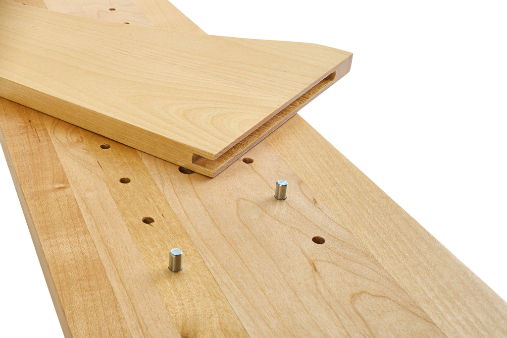 - Solid maple construction with a semi-gloss finish and recessed wire accents, black