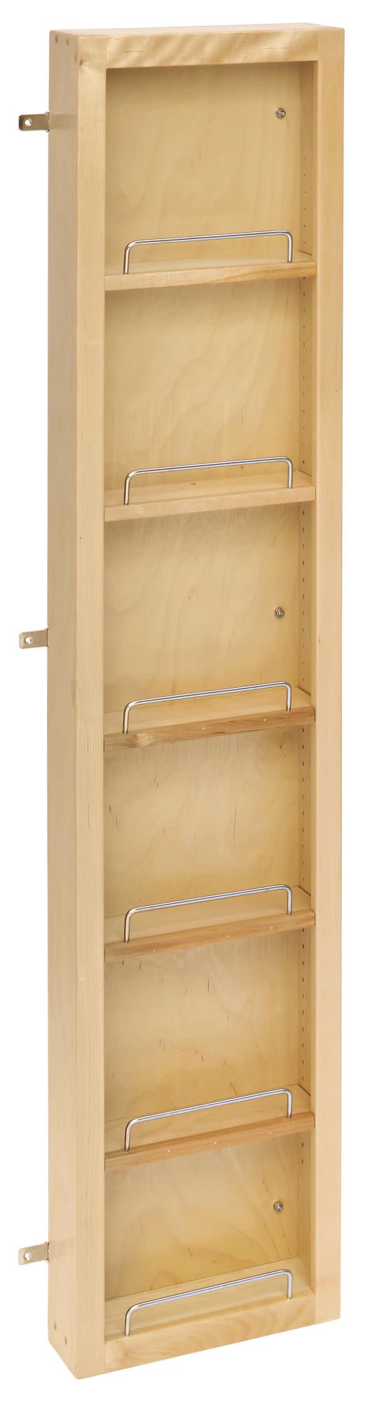 The 4WP Series swing-out wood pantry is designed for pantry cabinets. The series features amenities the competitors just don't offer from an industrial piano hinge, adjustable pantry shelves with chrome rails, to the customization flexibility of being able to add or remove stylish chrome bars to the top of the units for additional shelf space swing-out pantry. The solid construction consists of 1/2" maple wood that has a UV-cured, clear finish to ensure a beautiful match to any cabinet.. Included: (1) Wood Door-Mount pantry and mounting hardware