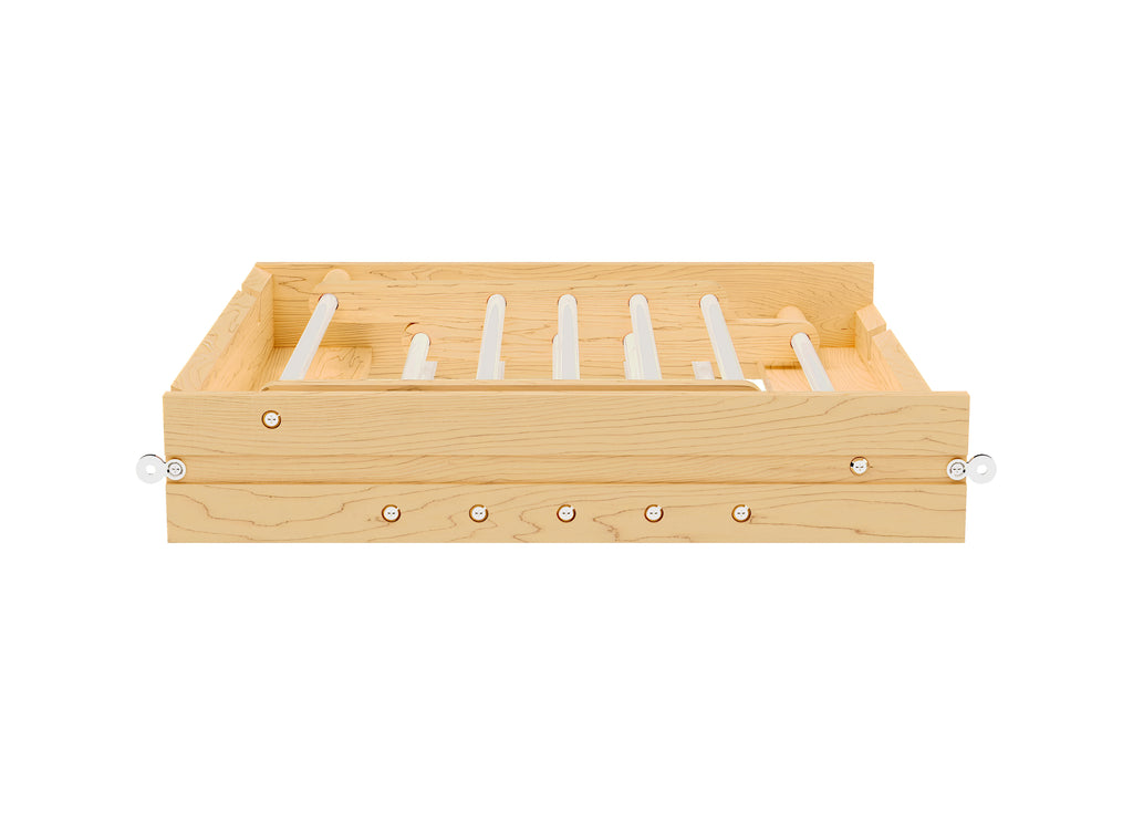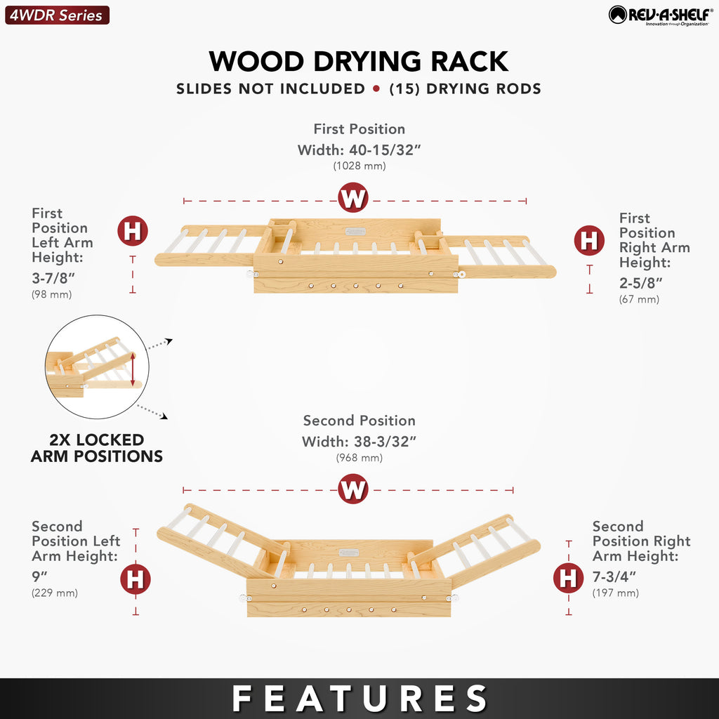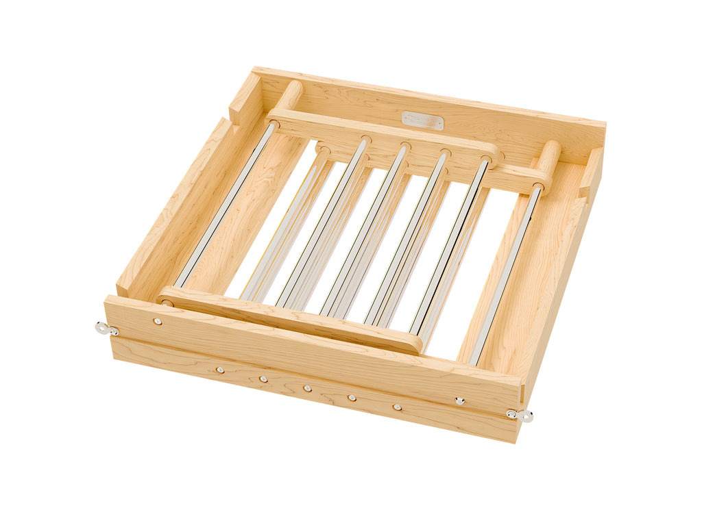 Do you need a drying solution for your laundry room? The 4WDR Drying Rack Drawer is one of the most sought-after solutions for flat or hang-to-dry clothing. The complete drawer system installs into your existing cabinet; you only need to attach your drawer front. This drying rack is easy to access and use: open the drawer and unfold the arms for extra drying space! With two positions of placement, you can flat or hang dry items on the rust-resistant stainless-steel rods.. Included: (1) Wood drying drawer, mounting hardware and door-mount brackets