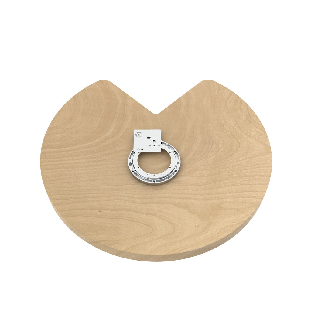 If your kidney base cabinet is a useless void, then reclaim the space with the Rev-A-Shelf® Wood Classic kidney shape lazy susan. The single and double 24", 28", and 32" diameters options are available with bottom mount 10" aluminum bearing and Twist-n-Lock telescoping hardware options that feature chrome posts and hubs. The shelves with 1-5/8" high rims rotate independently for effortless access. Open your cabinet door, and with just a spin, you have complete access to everything stored within.. Included: (1) Wood Kidney-Shaped shelf with rotating bearing attached