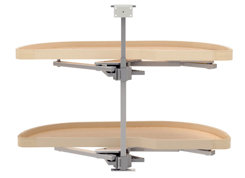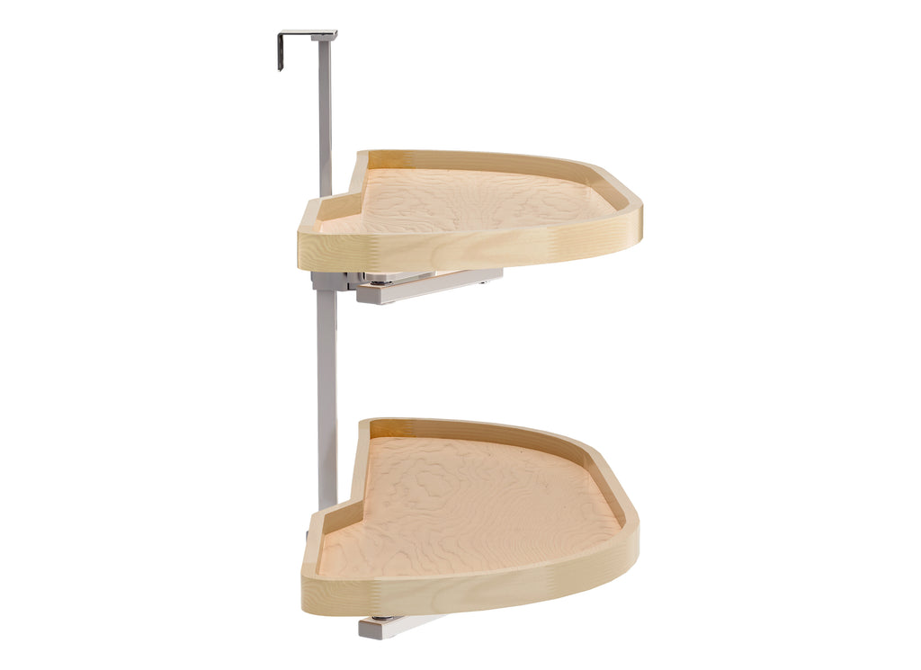 The 4WLS87 Series “Girasolo” Blind Corner Optimizer by Rev-A-Shelf® transforms underutilized blind corners into smart, accessible storage. Built on a soft-close pivot system, its tray effortlessly glides out of the cabinet and toward you, making hard-to-reach items a thing of the past. With sturdy metal hardware, premium maple shelves with finger joint rims and flexible mounting options, the Girasolo is designed to fit a variety of cabinet sizes and configurations. Included: (2) Right Girasolo Wood Classic trays, post mechanism and mounting hardware