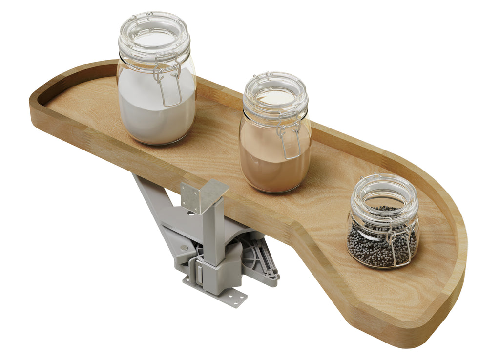 The 4WLS87 Series “Girasolo” Blind Corner Optimizer by Rev-A-Shelf® transforms underutilized blind corners into smart, accessible storage. Built on a soft-close pivot system, its tray effortlessly glides out of the cabinet and toward you, making hard-to-reach items a thing of the past. With sturdy metal hardware, premium maple shelves with finger joint rims and flexible mounting options, the Girasolo is designed to fit a variety of cabinet sizes and configurations. Included: (1) Girasolo tray, post mechanism, and mounting hardware