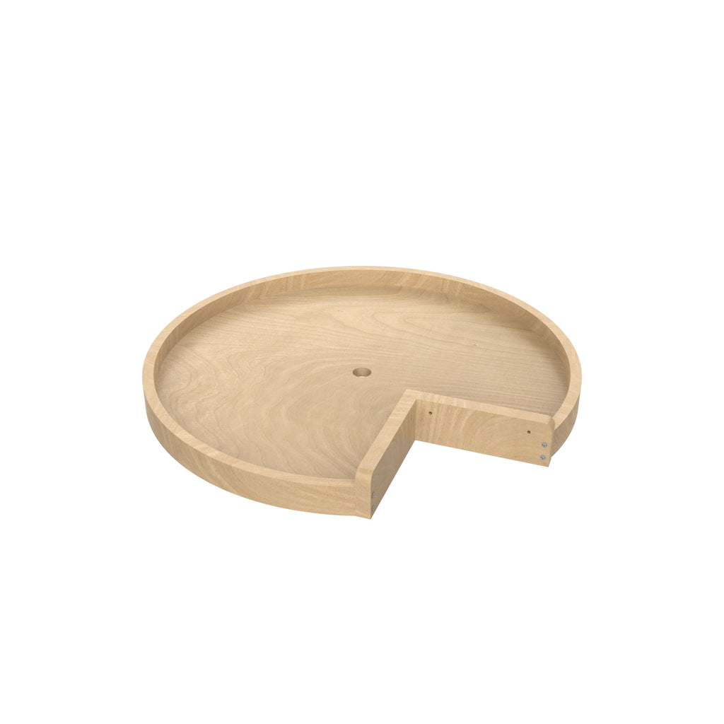 If your kidney base cabinet is a useless void, then reclaim the space with the Rev-A-Shelf® Wood Classic kidney shape lazy susan. The single and double 24", 28", and 32" diameters options are available with bottom mount 10" aluminum bearing and Twist-n-Lock telescoping hardware options that feature chrome posts and hubs. The shelves with 1-5/8" high rims rotate independently for effortless access. Open your cabinet door, and with just a spin, you have complete access to everything stored within.. Included: (1) Wood Pie-Cut shelf