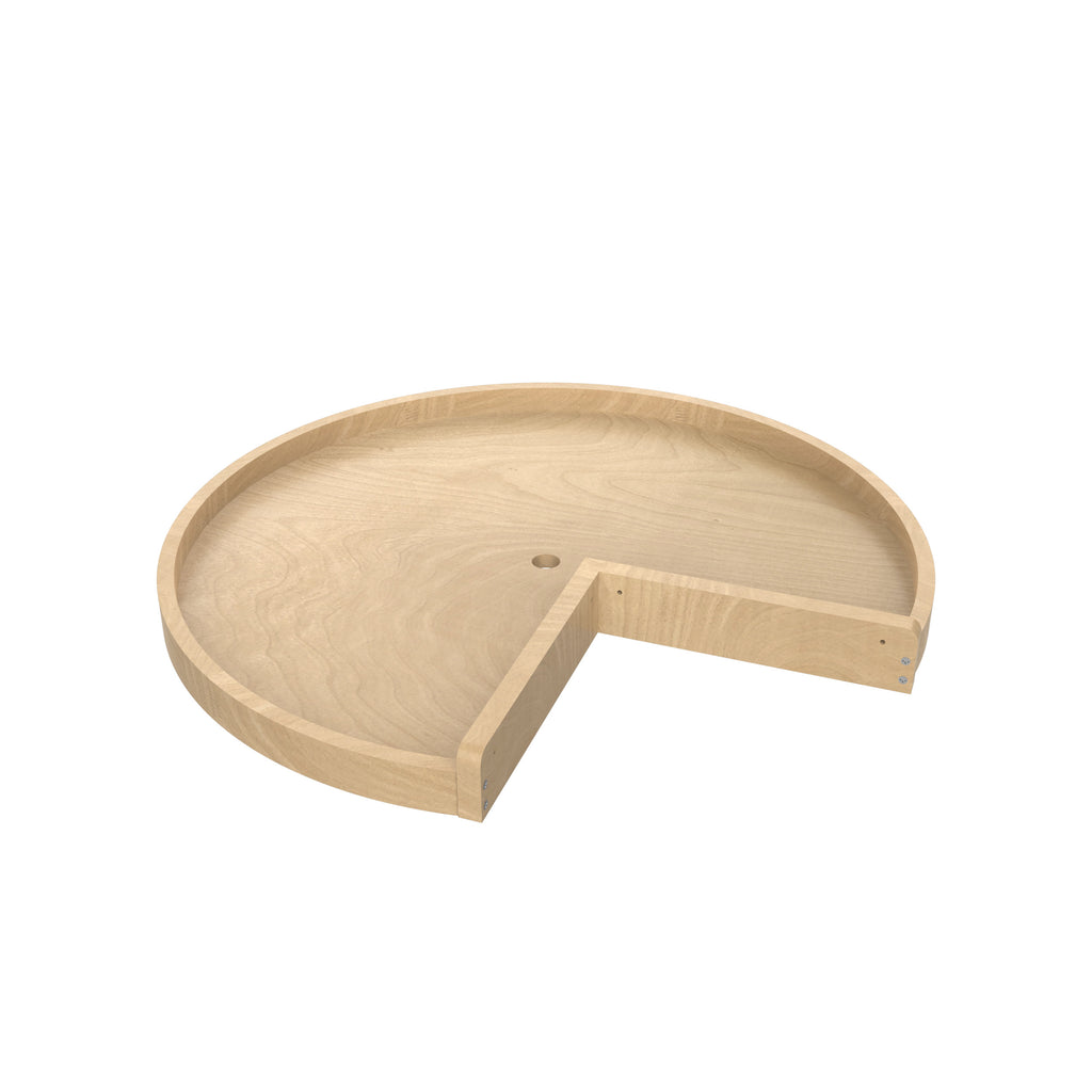If your kidney base cabinet is a useless void, then reclaim the space with the Rev-A-Shelf® Wood Classic kidney shape lazy susan. The single and double 24", 28", and 32" diameters options are available with bottom mount 10" aluminum bearing and Twist-n-Lock telescoping hardware options that feature chrome posts and hubs. The shelves with 1-5/8" high rims rotate independently for effortless access. Open your cabinet door, and with just a spin, you have complete access to everything stored within.. Included: (1) Wood Pie-Cut shelf