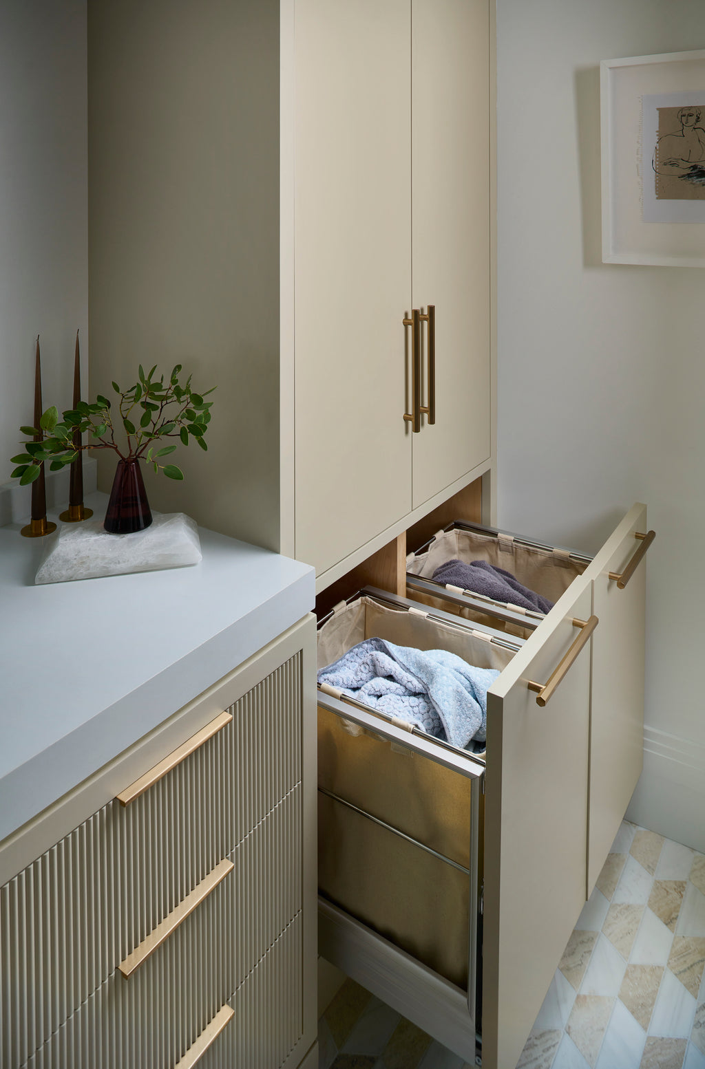 This beautiful pullout hamper is the only one in the industry that features a brushed aluminum frame with the Rev-A-Shelf® patented soft-close/soft-open Rev-A-Motion® technology. Designed for vanity base 18" cabinets. The removable cloth bag makes laundry simple, and the adjustable door-mount brackets ensure a perfect fit every time.. Included: (1) Canvas hamper with metal frame and mounting hardware