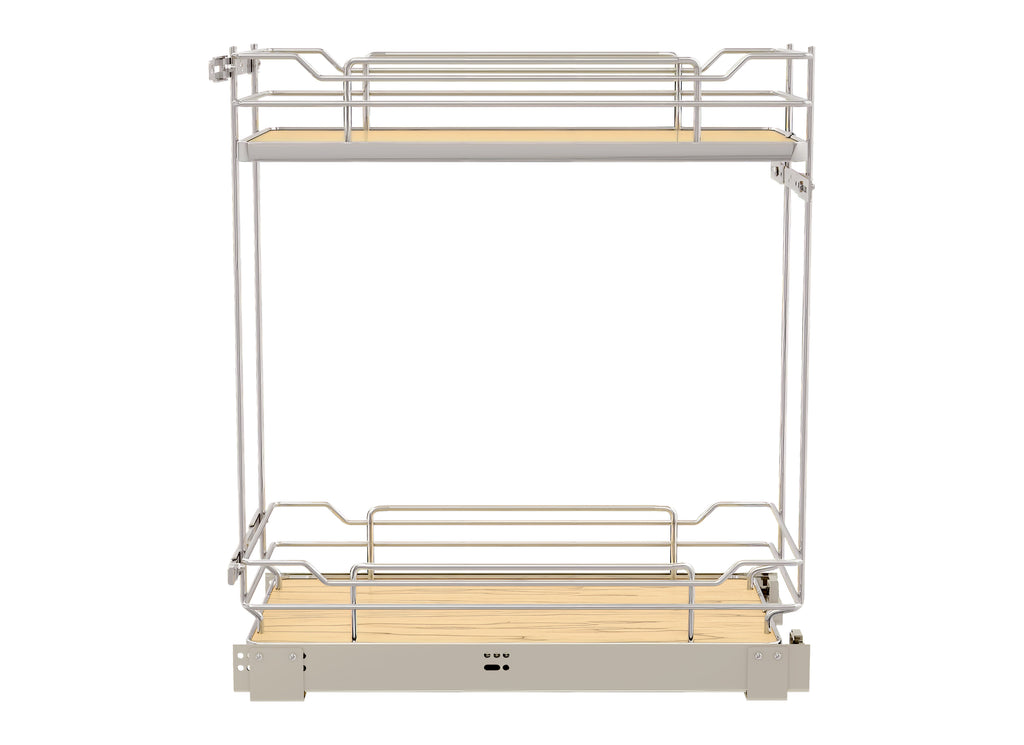 Bring the elegance with this chic design into your home with the Rev-A-Shelf® 5322 Series designed for frameless (full-access) and face frame cabinets. This Two-Tier Base Organizer combines clean lines, modern flat wire accents, and beautiful Orion Gray finish creates a striking piece of organizational technology. Features patented door-mount brackets, BLUM soft-close slides system and heavy-duty construction.. Included: (1) Two-Tier Organizer, (1) pair of Slides and mounting hardware