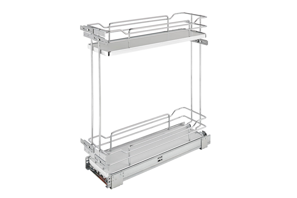 Bring the elegance with this chic design into your home with the Rev-A-Shelf® 5322 Series designed for frameless (full-access) and face frame cabinets. This Two-Tier Base Organizer combines clean lines, modern flat wire accents, and beautiful Orion Gray finish creates a striking piece of organizational technology. Features patented door-mount brackets, BLUM soft-close slides system and heavy-duty construction.. Included: (1) Two-Tier Organizer, (1) pair of Slides and mounting hardware