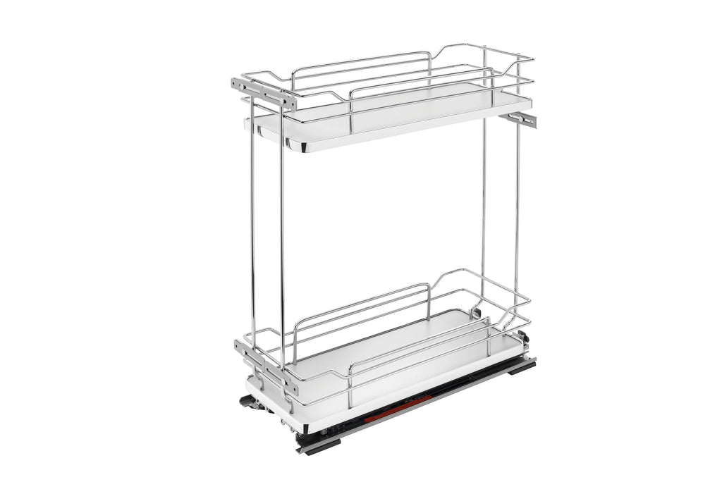 Bring the elegance with this chic design into your home with the Rev-A-Shelf® 5322 Series designed for frameless (full-access) and face frame cabinets. This Two-Tier Base Organizer combines clean lines, modern flat wire accents, and beautiful Orion Gray finish creates a striking piece of organizational technology. Features patented door-mount brackets, BLUM soft-close slides system and heavy-duty construction.. Included: (1) Two-Tier Organizer, (1) pair of Slides and mounting hardware