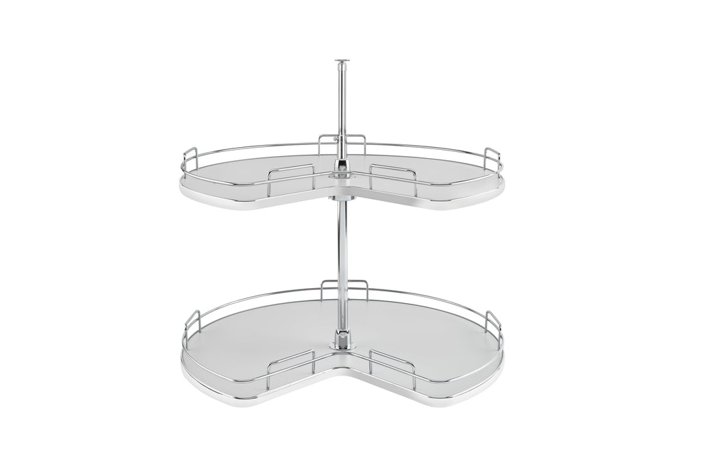 Make the most of that tricky corner cabinet space with the Rev-A-Shelf® 53472 Series Solid Bottom Two-Tier Kidney-Shaped Lazy Susan. Available in two sizes, these two-tier Lazy Susans include a telescoping shaft with independently rotating hardware for a perfect fit and easy access to your angled corner cabinet. Choose from multiple stylish finishes!. Included: (2) 32" Solid Bottom Kidney Susan Shelf, (1) telescoping post and mounting hardware