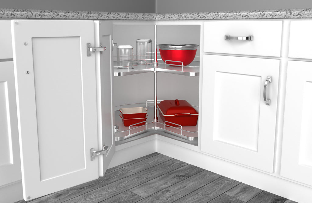 - All 2 and 3 Shelf Lazy Susans for a Wall or Base corner cabinets must first be assembled inside of the cabinet, before final installation