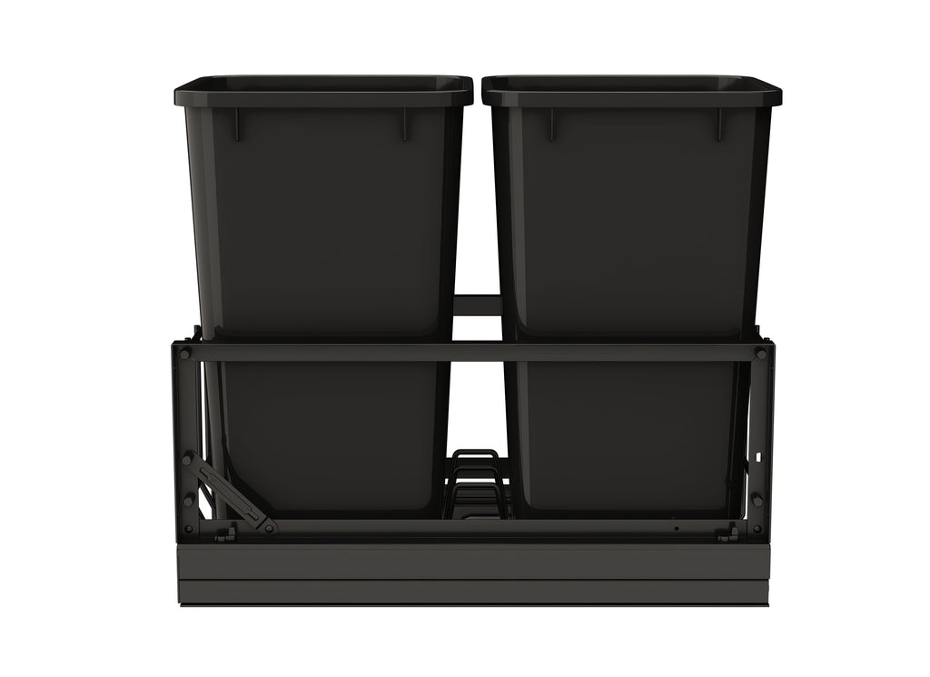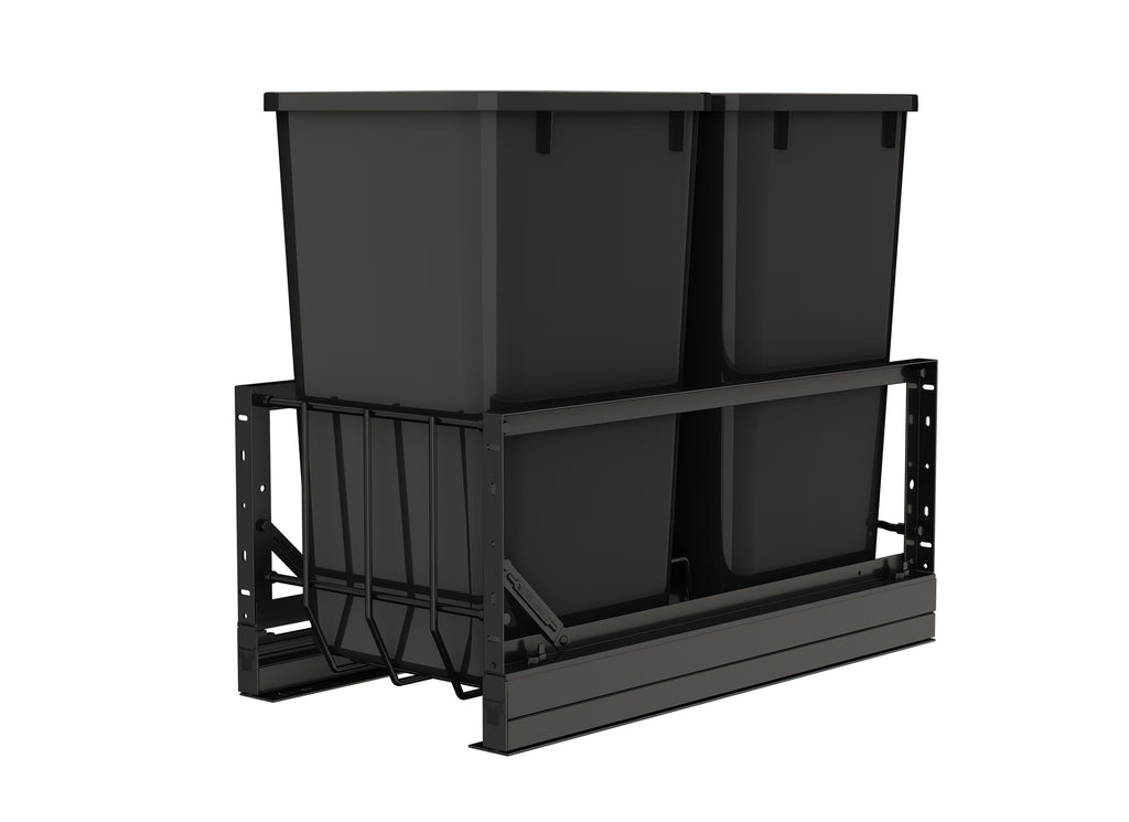 The 5349 Series from Rev-A-Shelf® sets a new standard for premium design and functionality. Featuring Italian-inspired elegance, these units offer a heavy-duty aluminum frame and smooth, soft-closing slides for effortless operation. The included door-mount hardware allows you to seamlessly attach your cabinet door, creating a sleek, cohesive look that integrates beautifully into your cabinetry.. Included: (2) Black 27 qt. waste containers, (1) metal frame, (1) pair of soft-close slides and mounting hardware