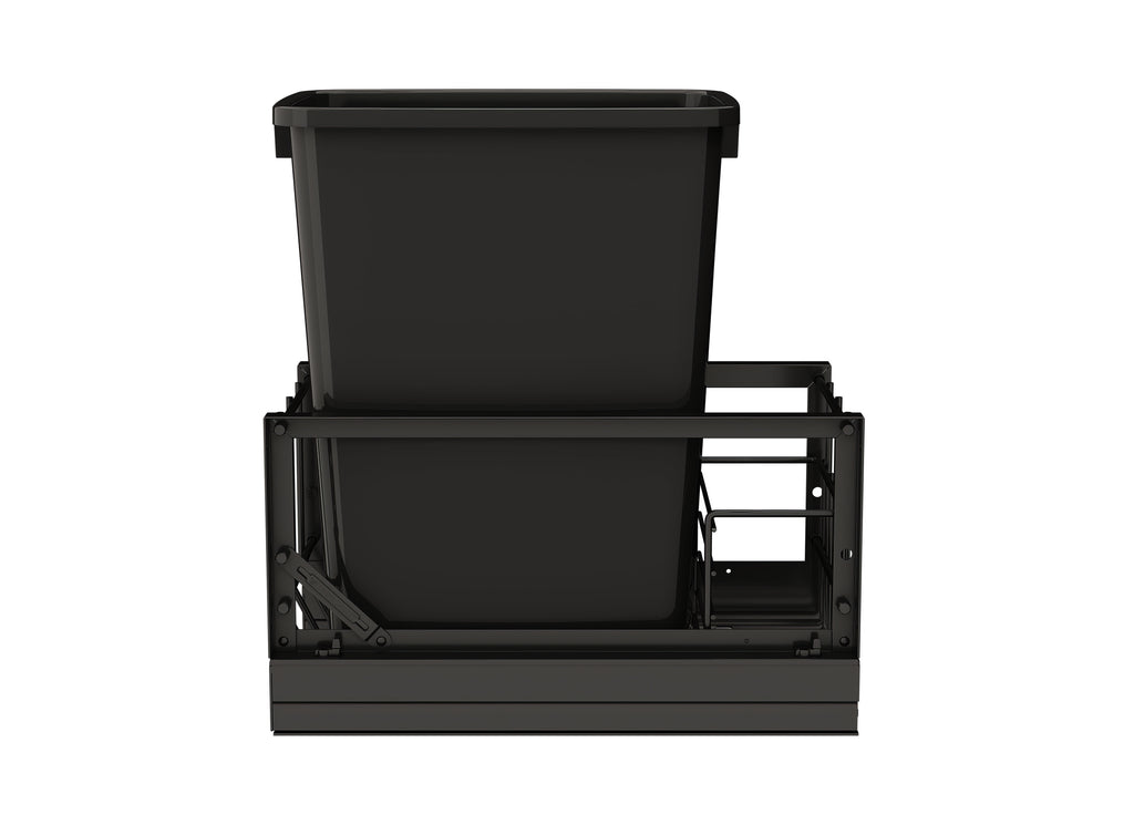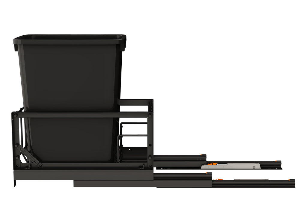 The 5349 Series from Rev-A-Shelf® sets a new standard for premium design and functionality. Featuring Italian-inspired elegance, these units offer a heavy-duty aluminum frame and smooth, soft-closing slides for effortless operation. The included door-mount hardware allows you to seamlessly attach your cabinet door, creating a sleek, cohesive look that integrates beautifully into your cabinetry.. Included: (1) Black 35 qt. waste container, (1) metal frame, (1) pair of soft-close slides and mounting hardware