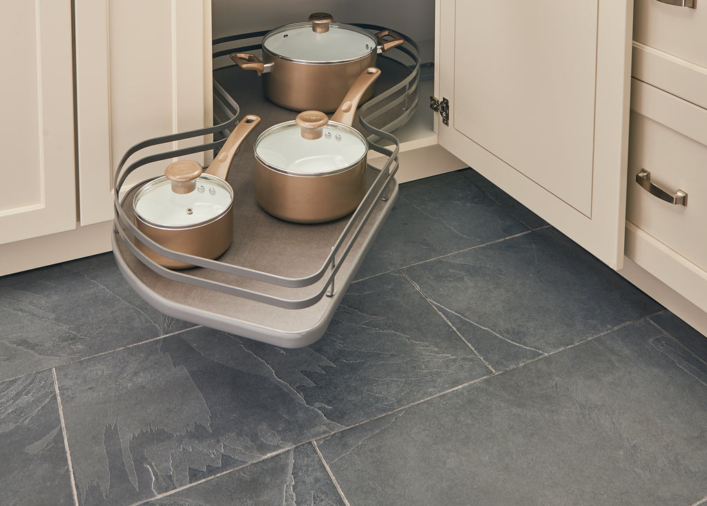 Reach for the stars and fulfill your storage needs with the Cloud Contemporary Blind Corner Organizer. Designed for blind corner cabinets with 15", 18", or 21" cabinet opening, the Cloud is available in multiple colors (Maple, Gray and Orion Gray) to match any kitchen, while adding a pinch of style in the process . Available in both single and two-tier, in either left or right hand options, the Cloud fits into nearly all blind corner applications and is available with or without soft-close.. Included: (1) Cloud Shelf, Hardware