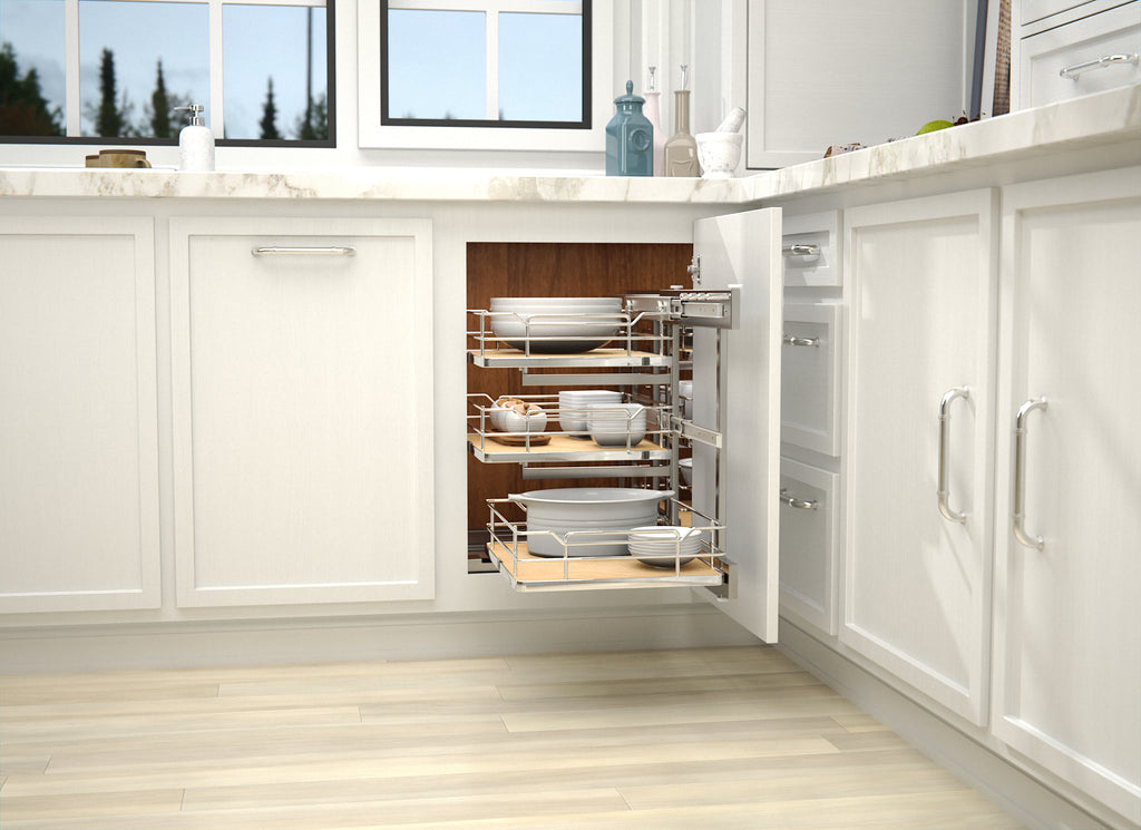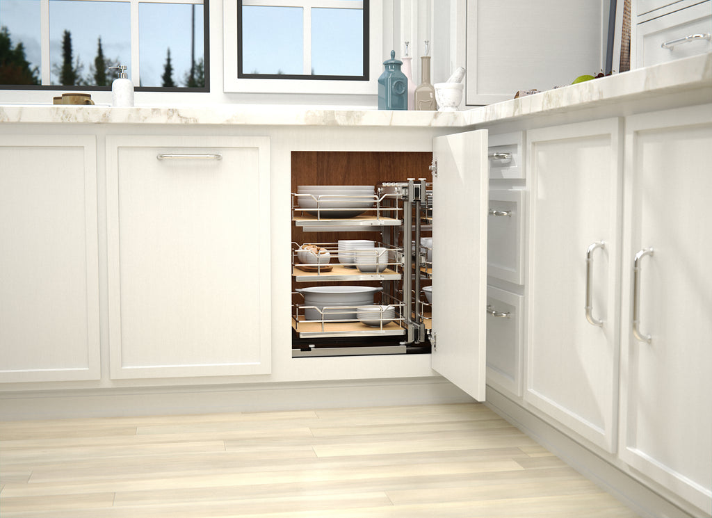 - Designed for a full-height blind corner cabinet with an 18" opening
