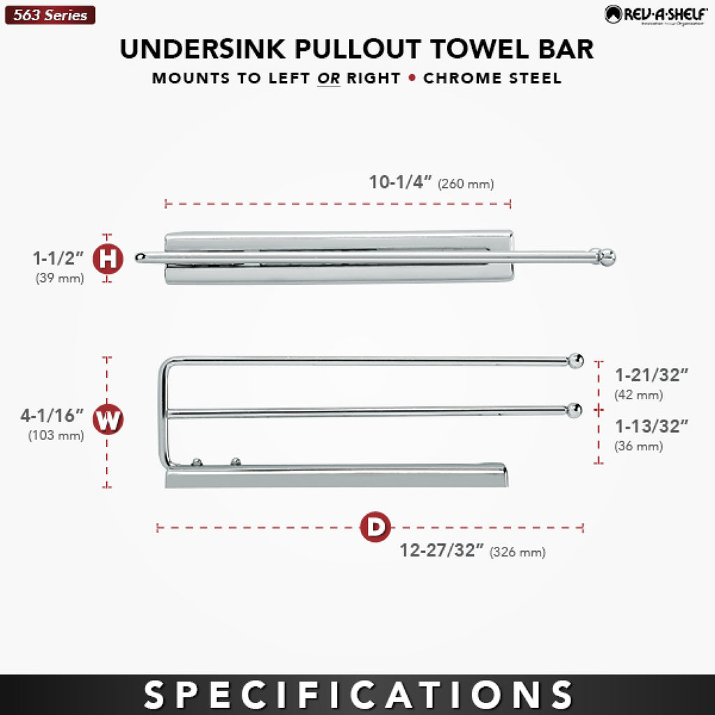 Store dish towels where you need them: right under the kitchen sink. Installs easily with only (3) screws and is perfect for the kitchen, laundry room, or vanity.. Included: (1) Chrome pullout dish towel holder and mounting hardware