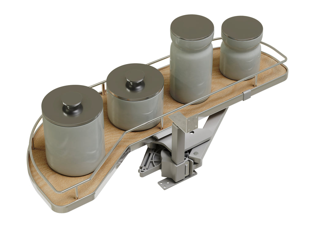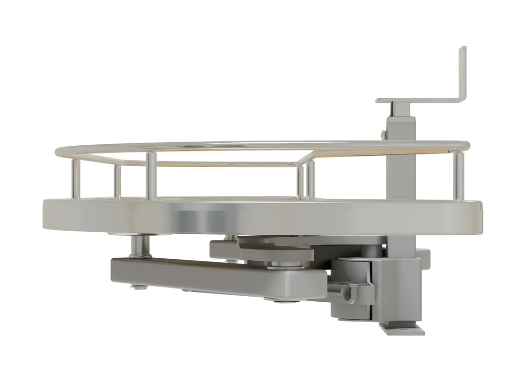 The 587 Series “Girasolo” Blind Corner Optimizer by Rev-A-Shelf® makes organizing your blind corner cabinet smooth sailing. This unique design features one or two pullout trays that easily glide directly out on an innovative soft-close pivot hardware system, eliminating the need for adjacent appliance clearance. The unique shelving system also allows for maximum storage capacity, while optimizing the usage of the hard-to-reach storage area.. Included: (1) Girasolo tray, post mechanism, and mounting hardware