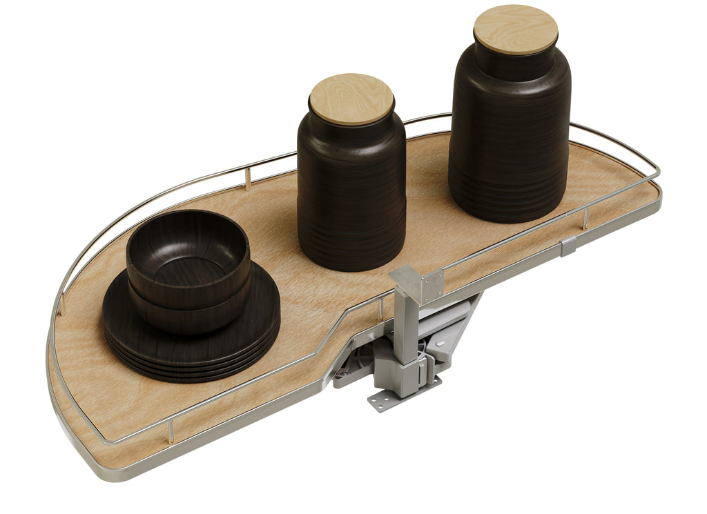 The 587 Series “Girasolo” Blind Corner Optimizer by Rev-A-Shelf® makes organizing your blind corner cabinet smooth sailing. This unique design features one or two pullout trays that easily glide directly out on an innovative soft-close pivot hardware system, eliminating the need for adjacent appliance clearance. The unique shelving system also allows for maximum storage capacity, while optimizing the usage of the hard-to-reach storage area.. Included: (1) Girasolo tray, post mechanism, and mounting hardware