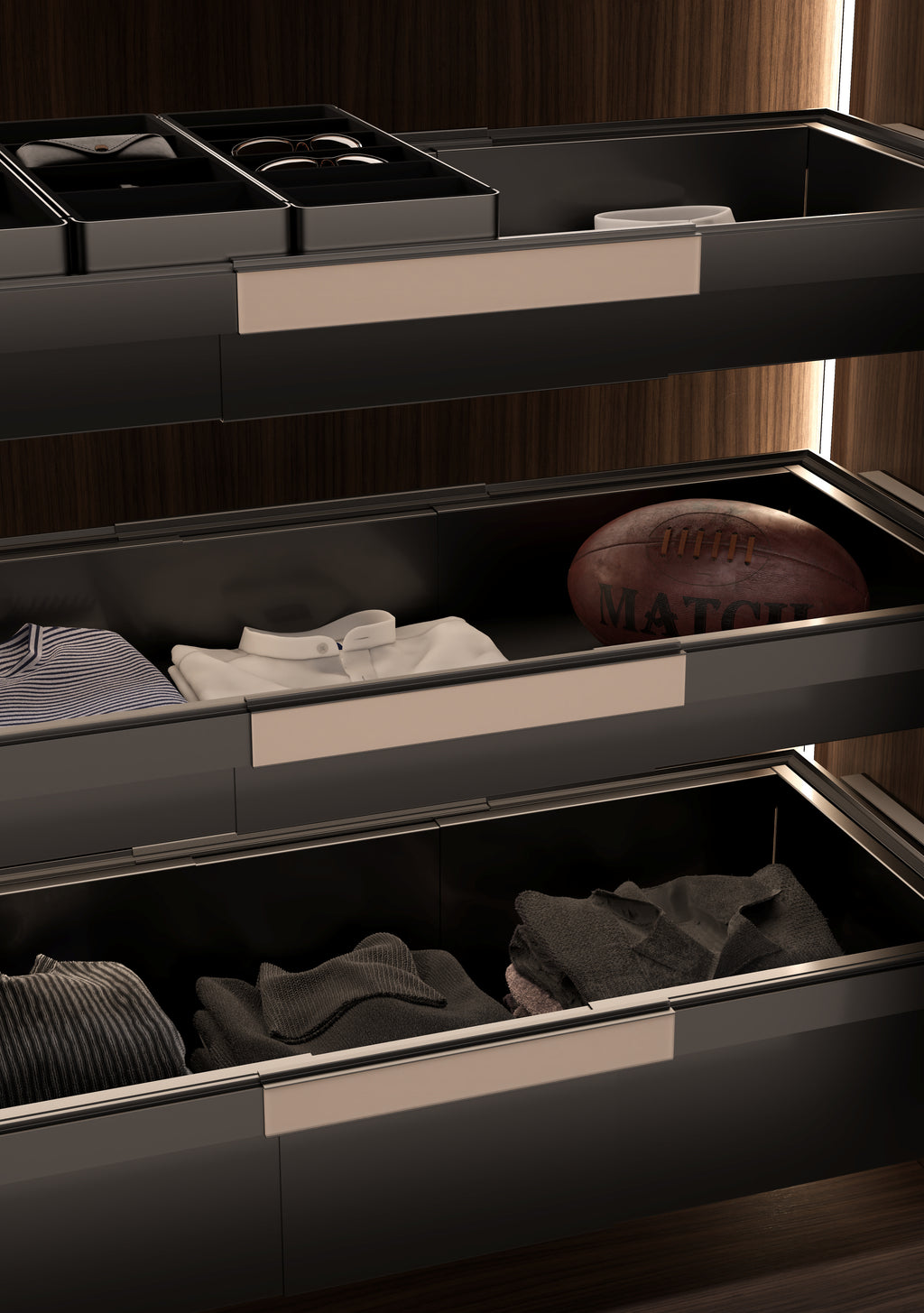 The EDGE collection is the ultimate fusion of luxury, practicality, and contemporary design. Envisioned to transform your wardrobe into a flexible, well-accessorized space, it blends modularity with sophistication. Its minimal, telescopic elements adapt seamlessly to any space, catering to those who demand functionality and style.
