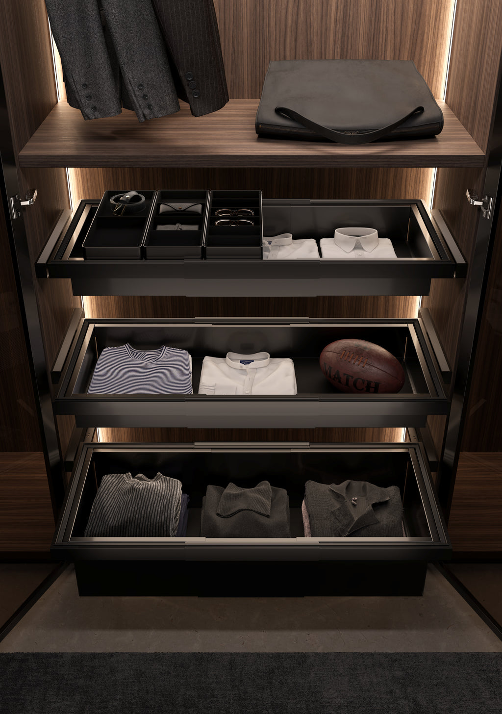 The EDGE collection is the ultimate fusion of luxury, practicality, and contemporary design. Envisioned to transform your wardrobe into a flexible, well-accessorized space, it blends modularity with sophistication. Its minimal, telescopic elements adapt seamlessly to any space, catering to those who demand functionality and style.