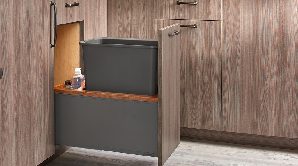 The style possibilities are limitless with the 5LB Series LEGRABOX from Rev-A-Shelf®. This fully assembled pullout waste container is seen as one of the best in the industry. The LEGRABOX frame comes fully assembled and is available in multiple configurations. These units glide on concealed soft-close BLUM slides and are compatible with TIP-ON and SERVO-DRIVE systems (sold separately).. Included: (1) 35 qt. waste container, (1) 35 qt. lid, (1) wod frame, (1) pair of slides, mounting hardware, and Door-Mount brackets