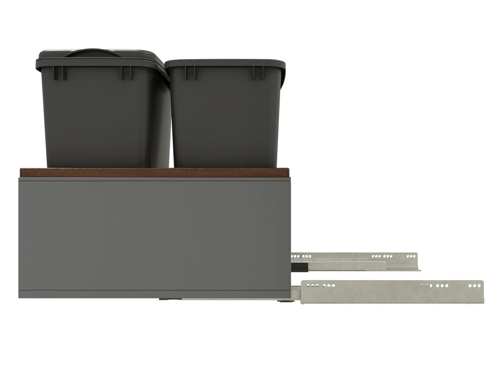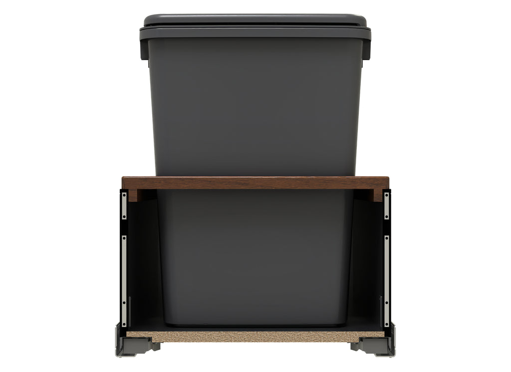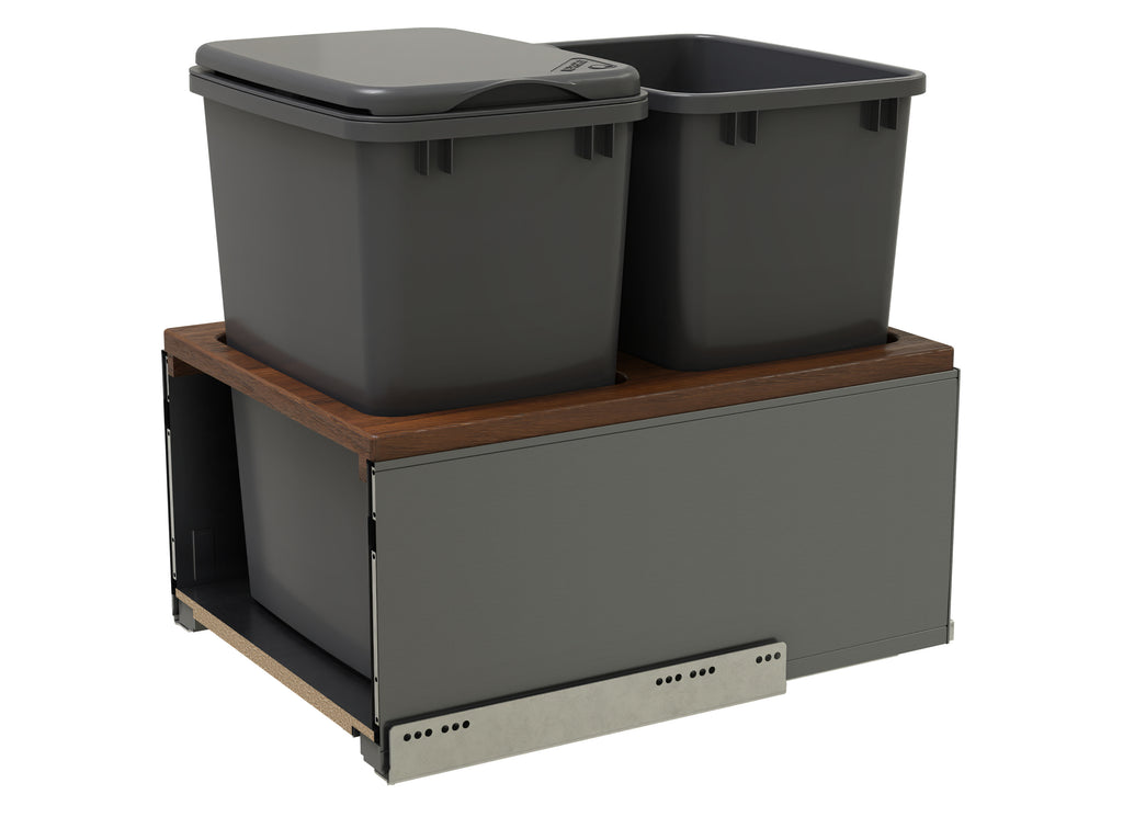 The style possibilities are limitless with the 5LB Series LEGRABOX from Rev-A-Shelf®. This fully assembled pullout waste container is seen as one of the best in the industry. The LEGRABOX frame comes fully assembled and is available in multiple configurations. These units glide on concealed soft-close BLUM slides and are compatible with TIP-ON and SERVO-DRIVE systems (sold separately).. Included: (2) 35 qt. waste containers, (1) 35 qt. lid, (1) wood frame, (1) pair of slides, mounting hardware, and Door-Mount brackets