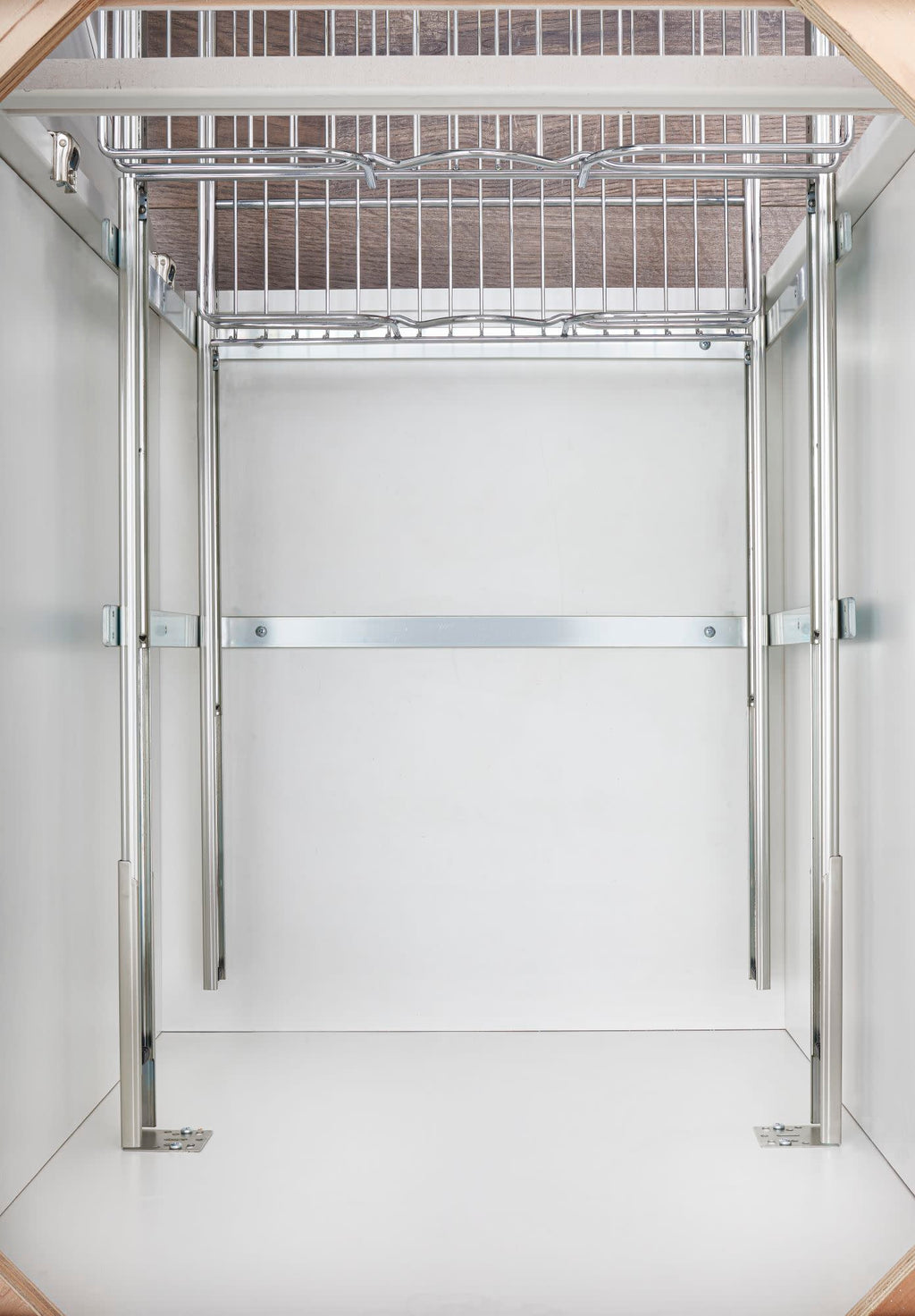 - Mounts to cabinet floor, rear and faceframe of cabinet