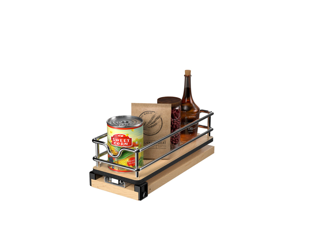 Sugar, spice, and everything nice…. Our 5WU Series Upright Wall Pullouts can store it all! Add function and beauty to your wall cabinet with these one-of-a-kind pullouts that can hold canned goods, cooking oils and sprays, spices and so much more.. Included: (1) Mouting base with (1) 4.5" Single-tier pullout, ball-bearing slides and mounting hardware