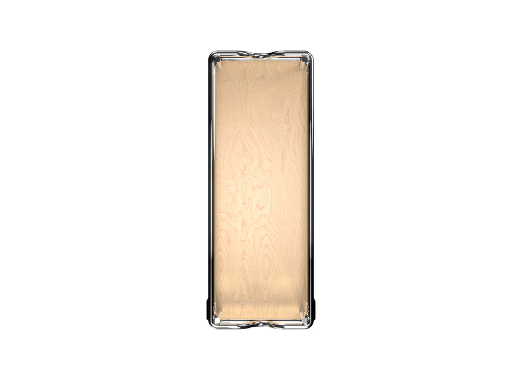 - Natural compact melamine shelves with chrome-plated round wire accents