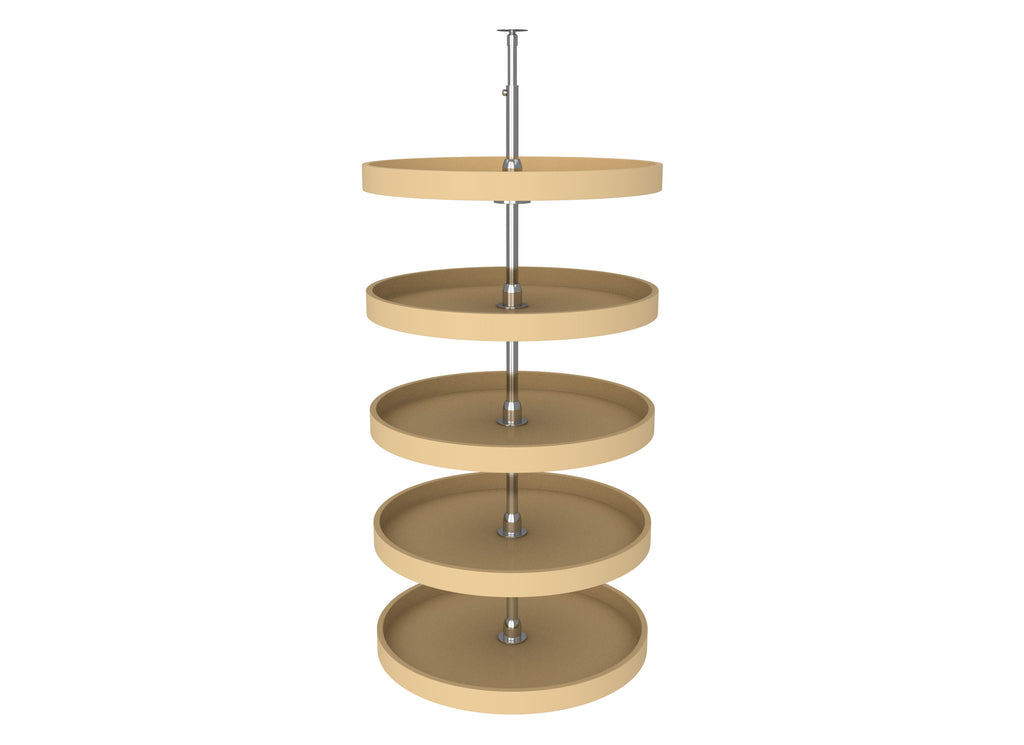 If you are looking for the best polymer susan for your tall pantry cabinet, you are in the right place. Revered as the best in the industry, The Rev-A-Shelf® Polymer full-circle 5-shelf pantry susans available in 16", 18", 20", 24" and 32" diameters that come with a durable chrome post and hubs. The smooth polystyrene shelves come with an adjustable telescoping post that allows each shelf to rotate independently.. Included: (5) Almond Full-Circle Polymer Shelves (1) telescoping post and mounting hardware