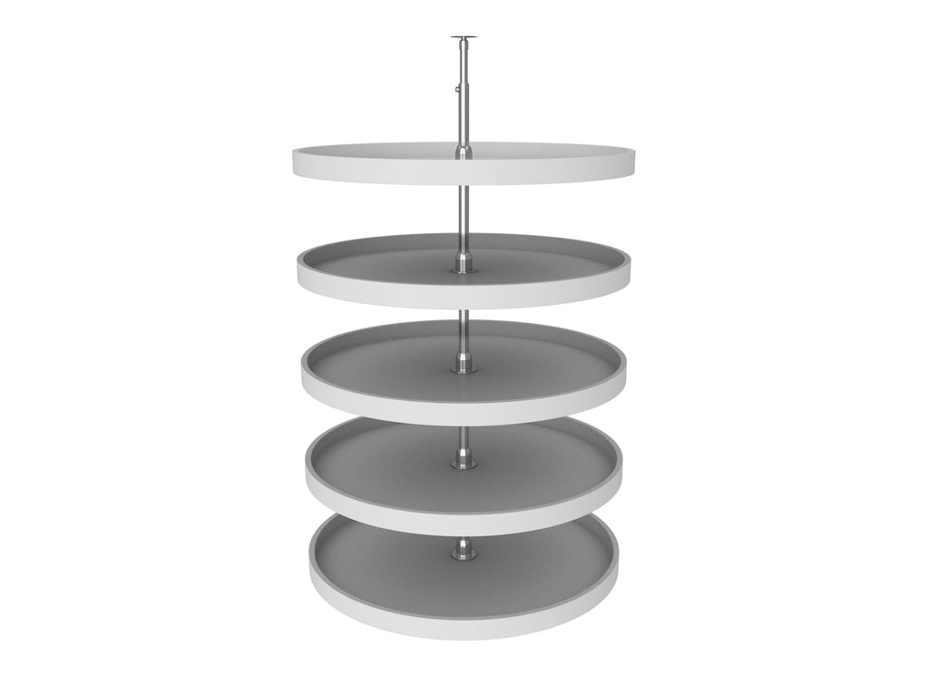 If you are looking for the best polymer susan for your tall pantry cabinet, you are in the right place. Revered as the best in the industry, The Rev-A-Shelf® Polymer full-circle 5-shelf pantry susans available in 16", 18", 20", 24" and 32" diameters that come with a durable chrome post and hubs. The smooth polystyrene shelves come with an adjustable telescoping post that allows each shelf to rotate independently.. Included: (5) White Full-Circle Polymer Shelves (1) telescoping post and mounting hardware
